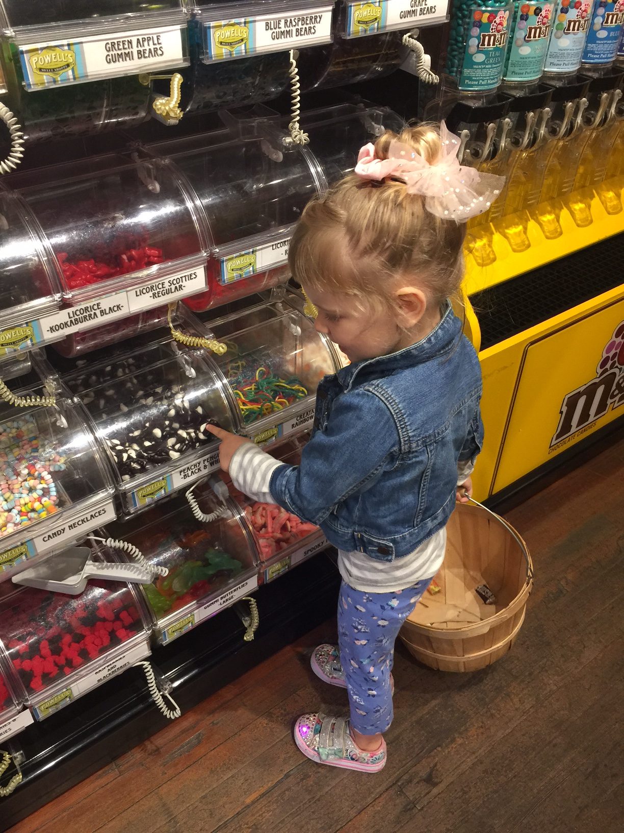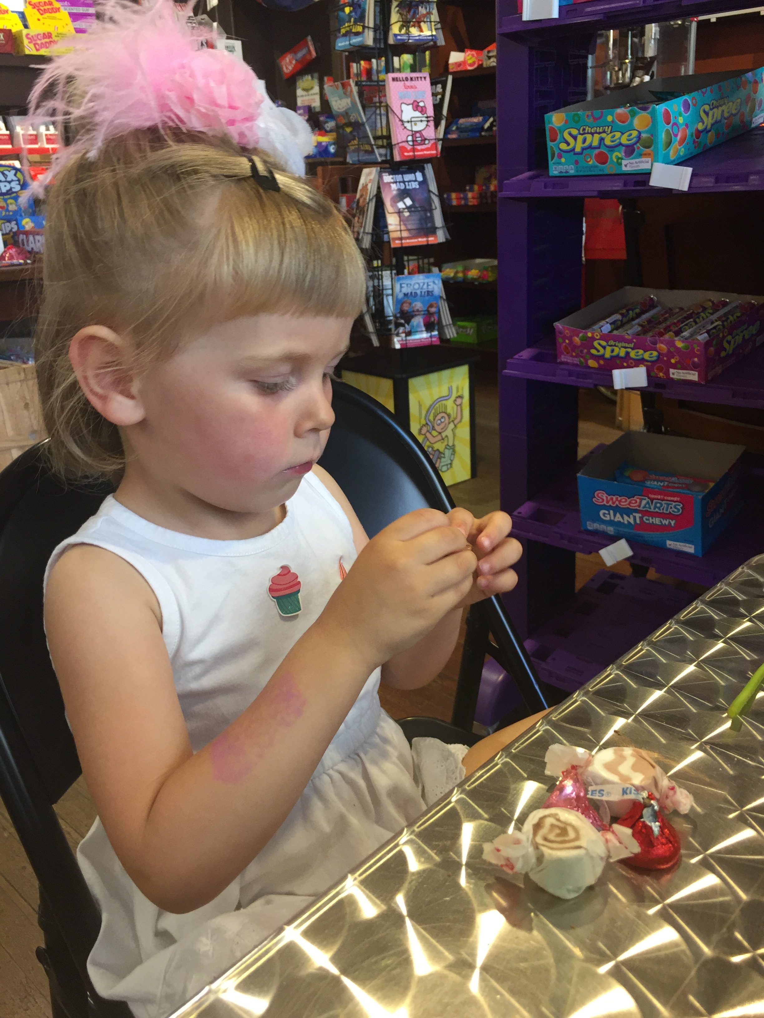 But, seasoned toddler parent me now knows that if we waited on the candy store, the entire afternoon would go something like this: