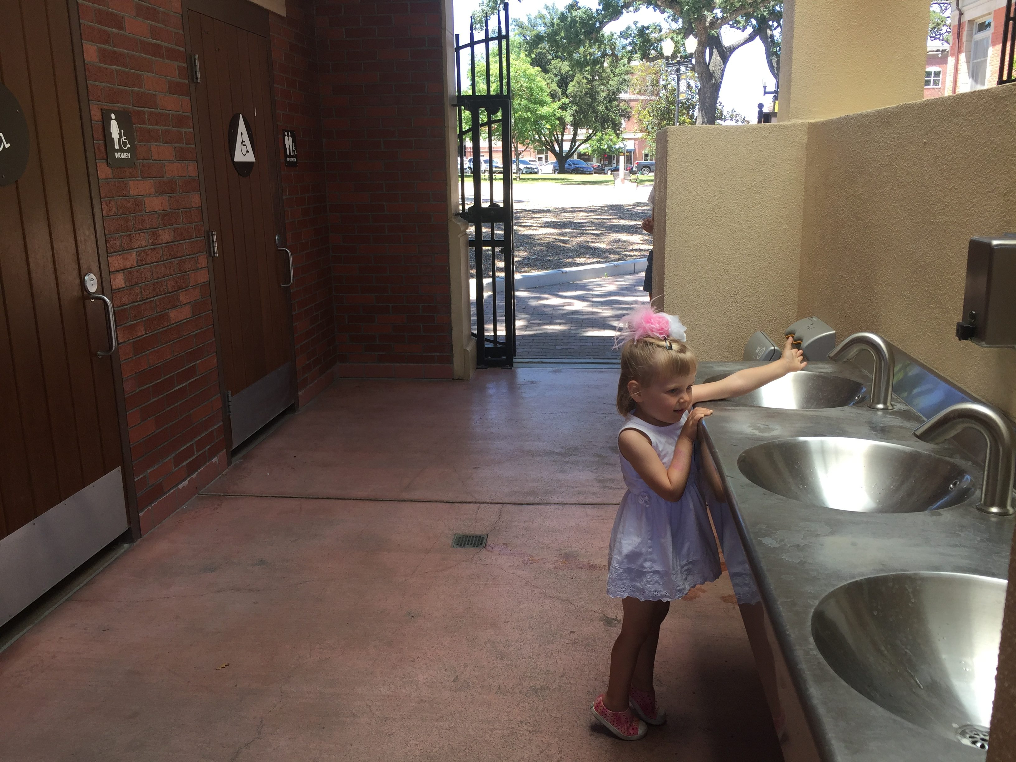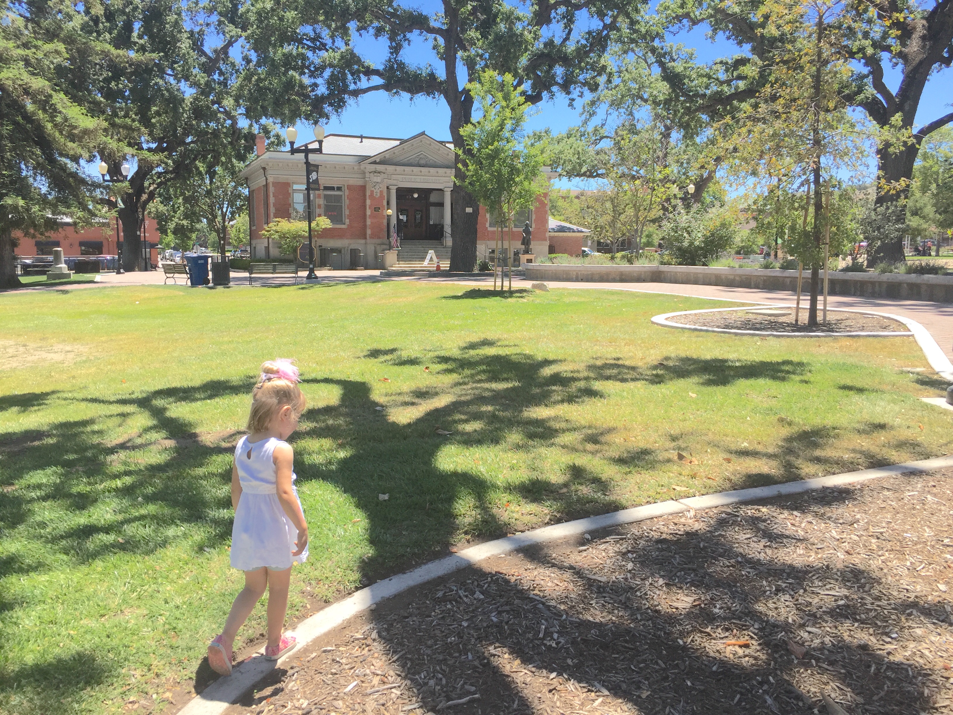 Our little tradition usually starts around noon in the Paso Robles City Library parking lot at 1000 Spring St. You’re almost always guaranteed a space in this lot during the weekdays, and, as with all of the downtown, parking is free. The library has two restroom locations (one in the city hall lobby and another inside the library) and a water fountain. So it’s just a good home base when you’re with kids.