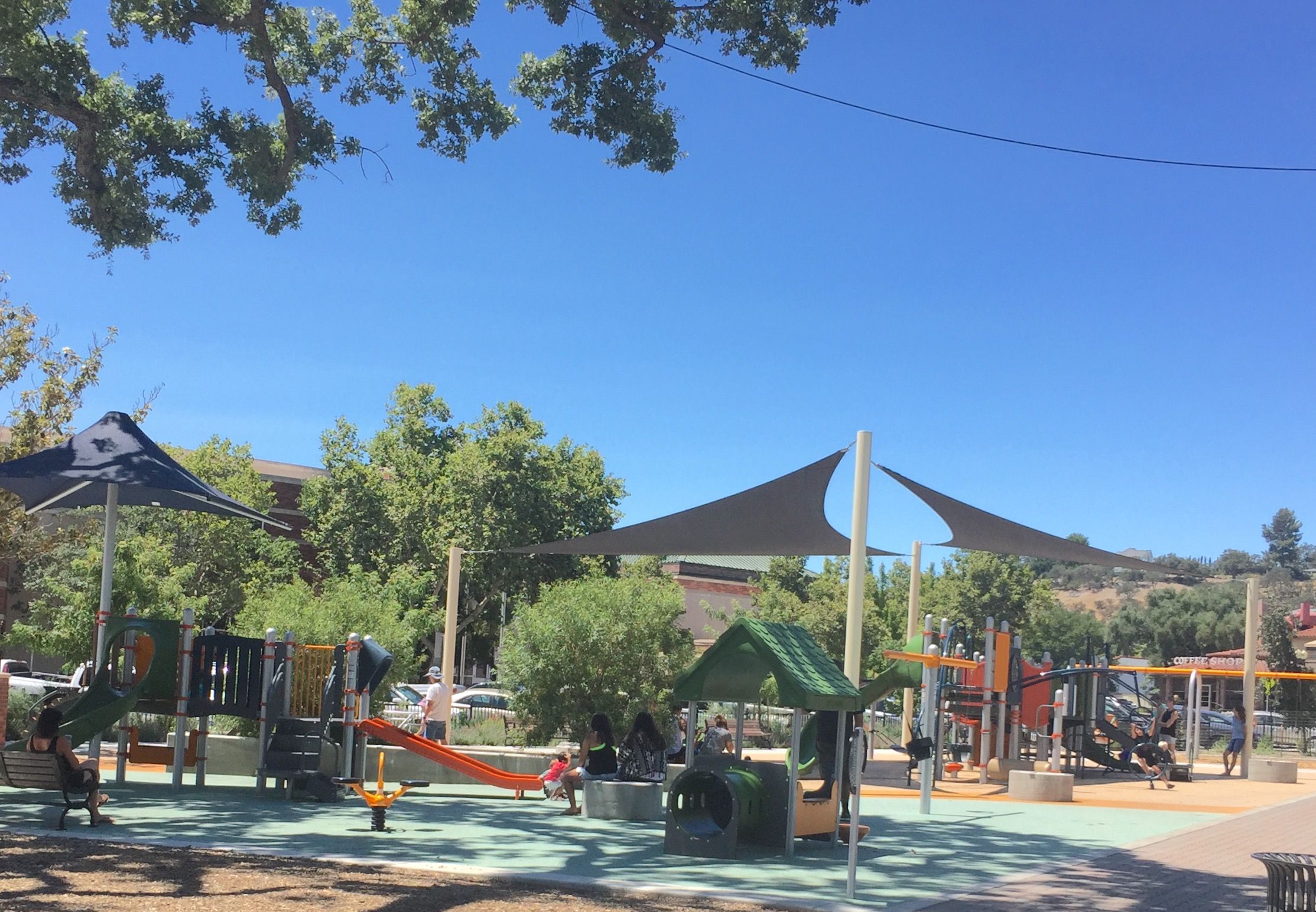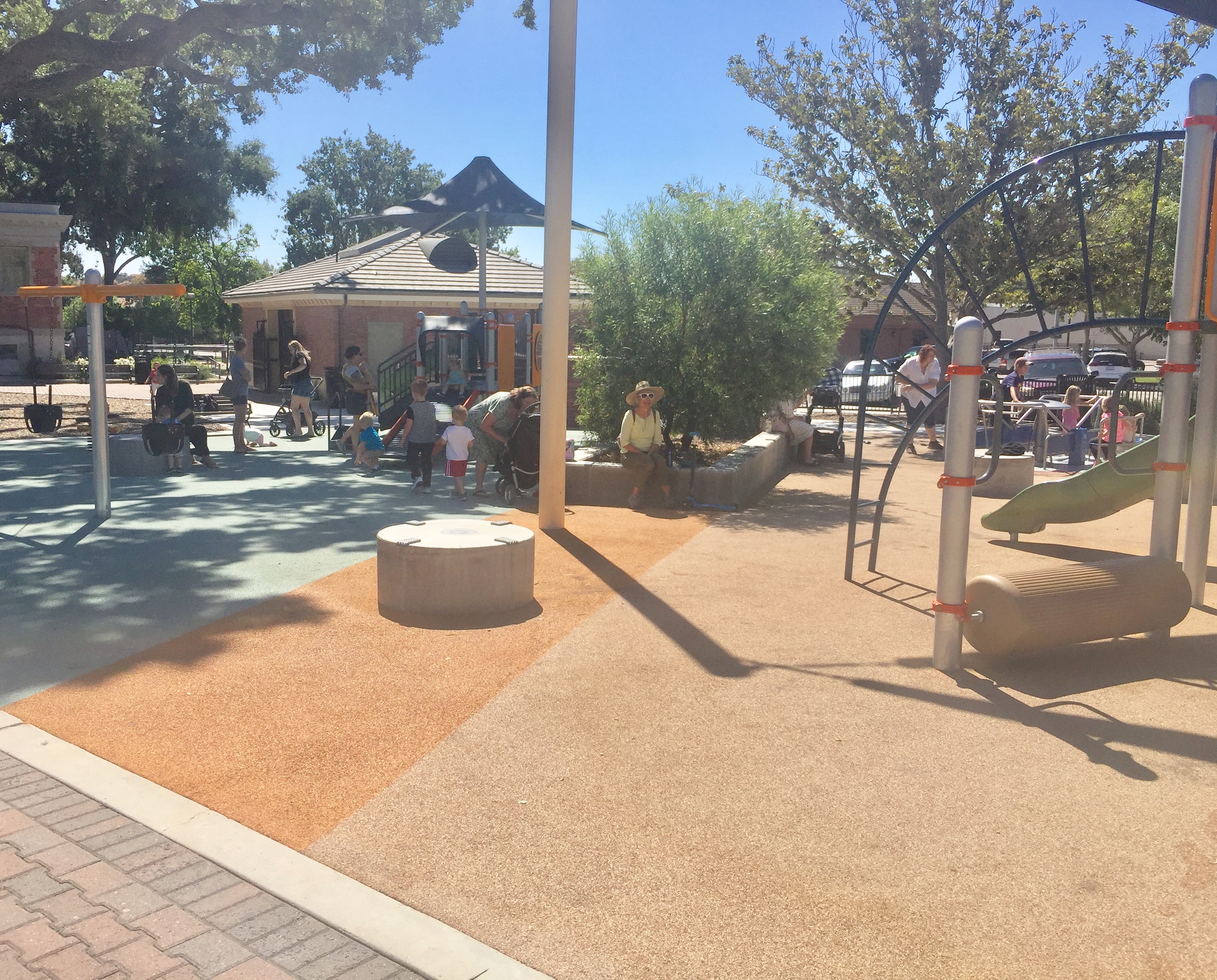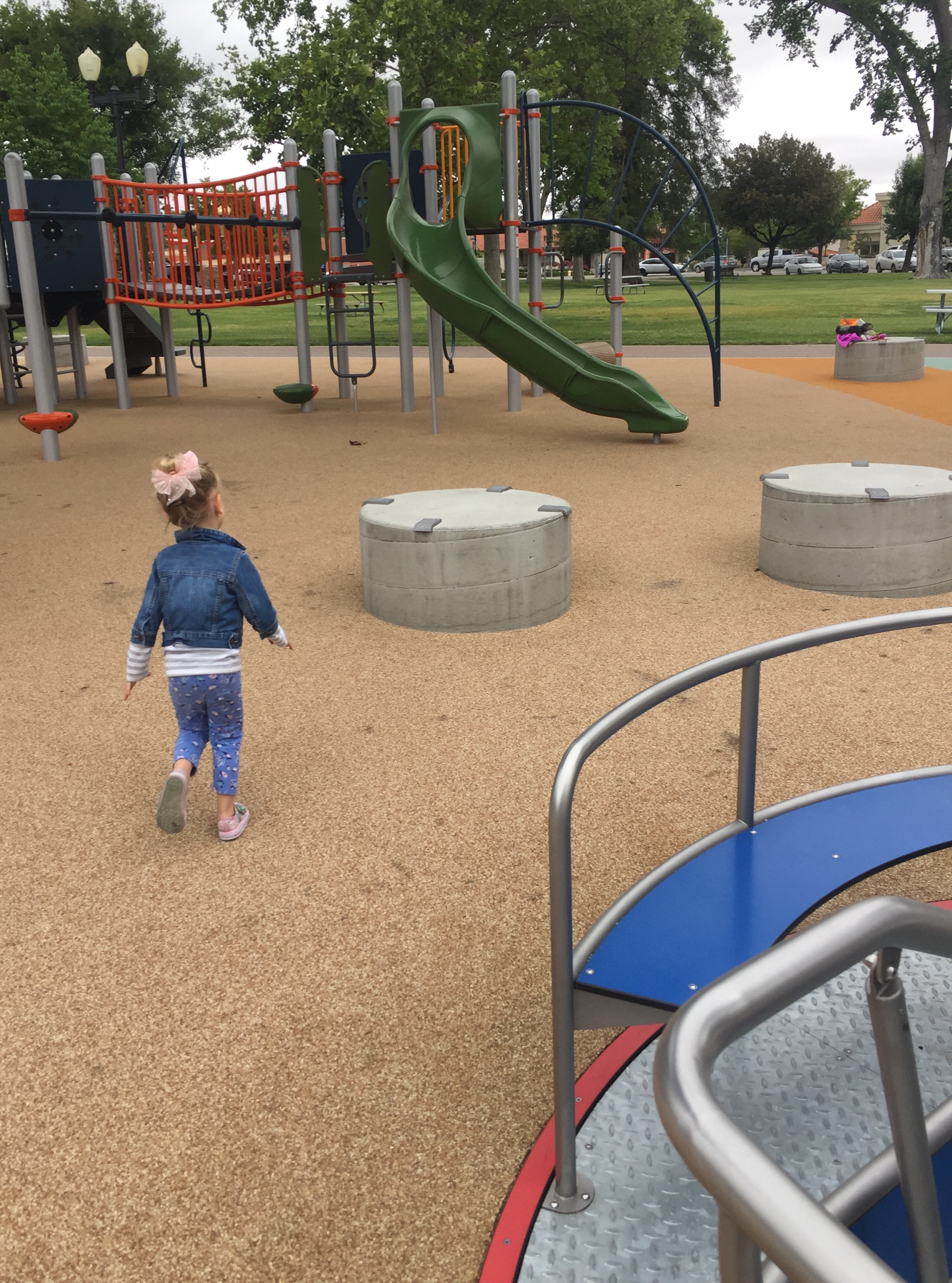 But in 2016, the city replaced the entire City Park Playground with new awesome stuff like a merry-go-round, see-saw and a super cool all-access swing. So that makes the playground extra cool. It has two sections: one for very smaller children and another for the bigger kids. But both sections basically work for all ages.