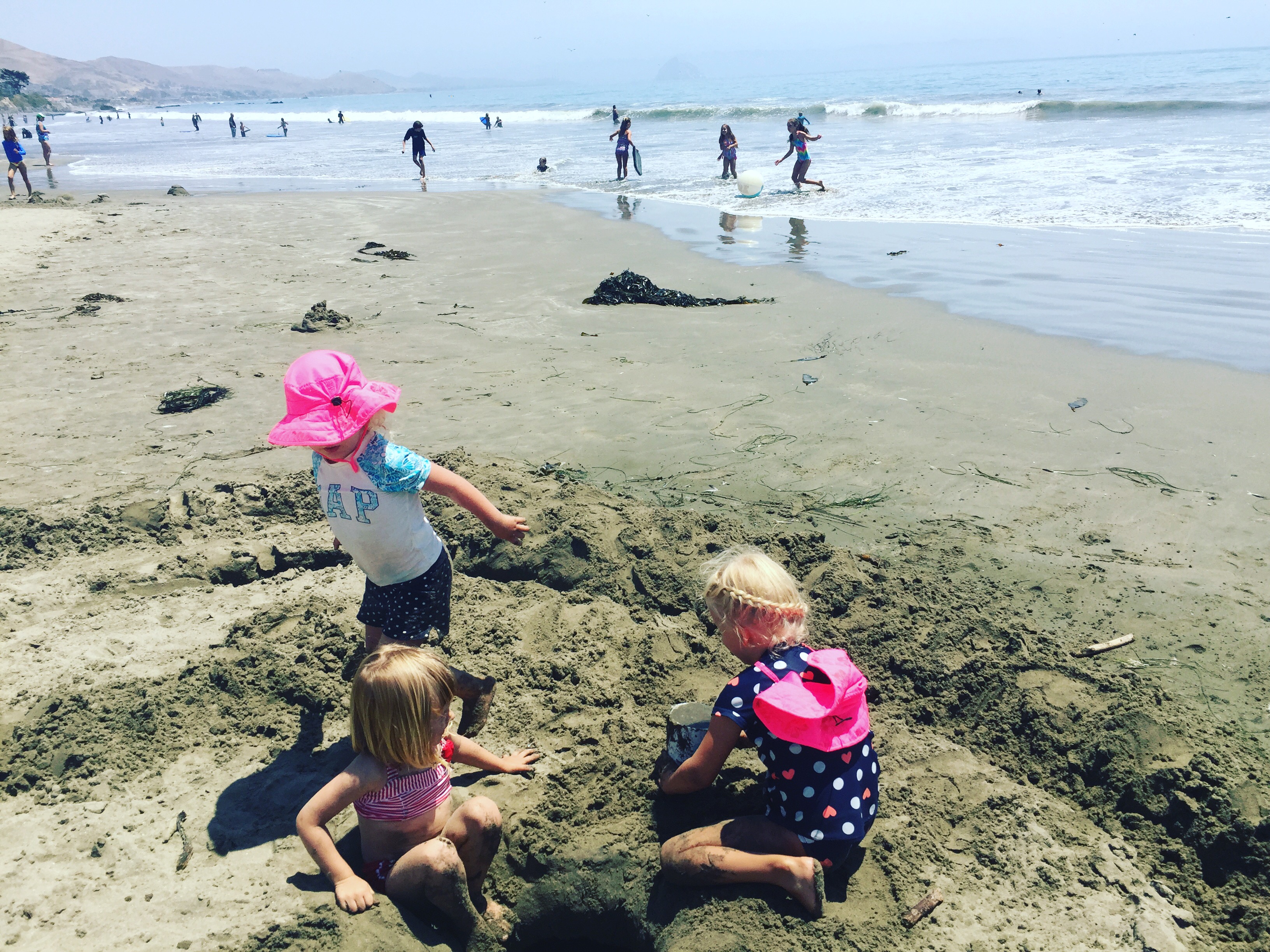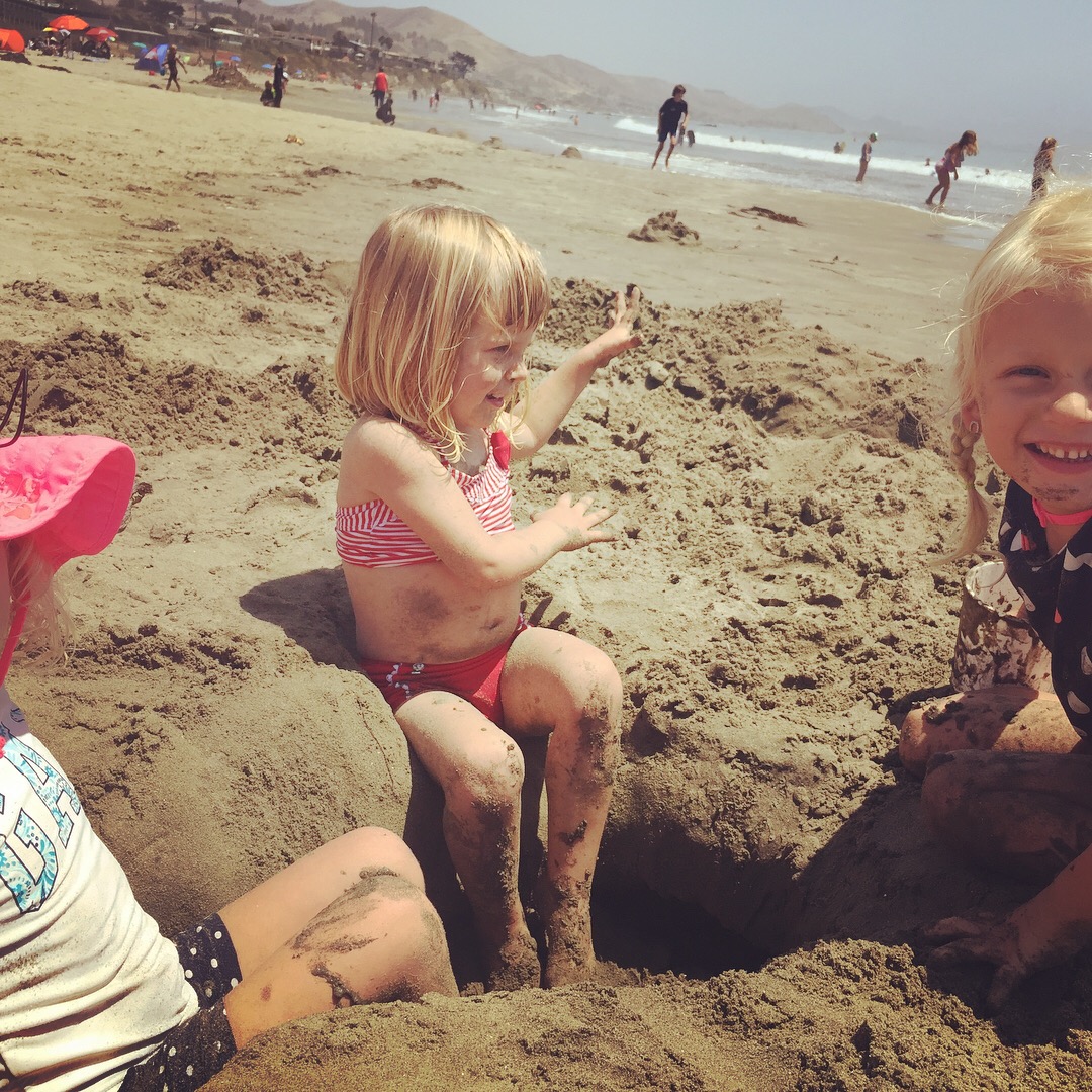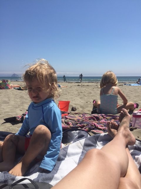 Fourth, there’s, you know, the drive to get to the actual beach. Which, for us, is about 40 minutes one way from Paso Robles, depending on which beach we pick. The ride only really goes well if the baby sleeps. Because car kids get bored. So then they whine. And moms have to repeat the chorus of “Mommy can’t help you when she’s driving” at least 200 times. Give or take.