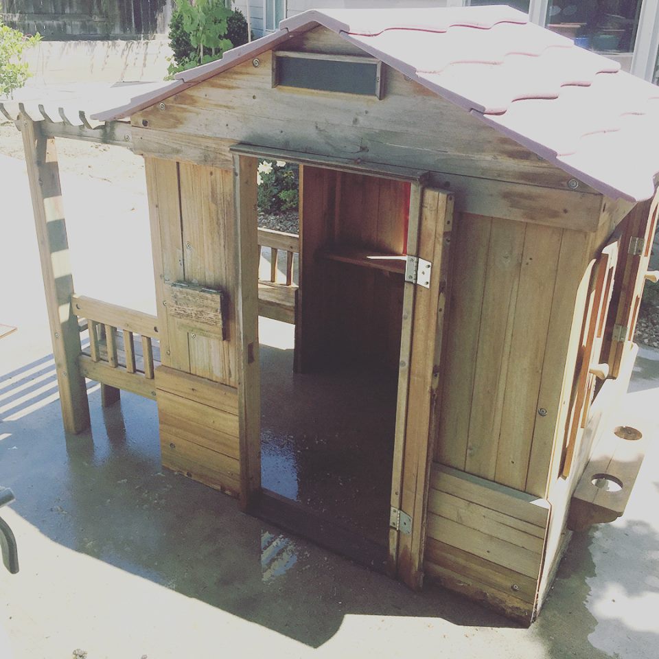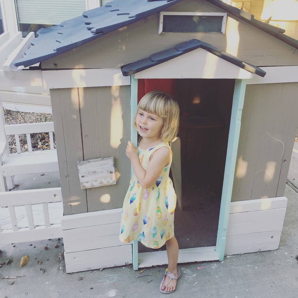 I told you in the last post that the story behind this playhouse is it’s one of the first things I bought as a stay-at-home mom. I bought it for something crazy like $30 from another mom on buy/sell/trade. But then it sat unfinished for three years, laughing at me from its backyard pedestal because who has time for a project other than maybe a quick shower with babies and kids around 24/7?