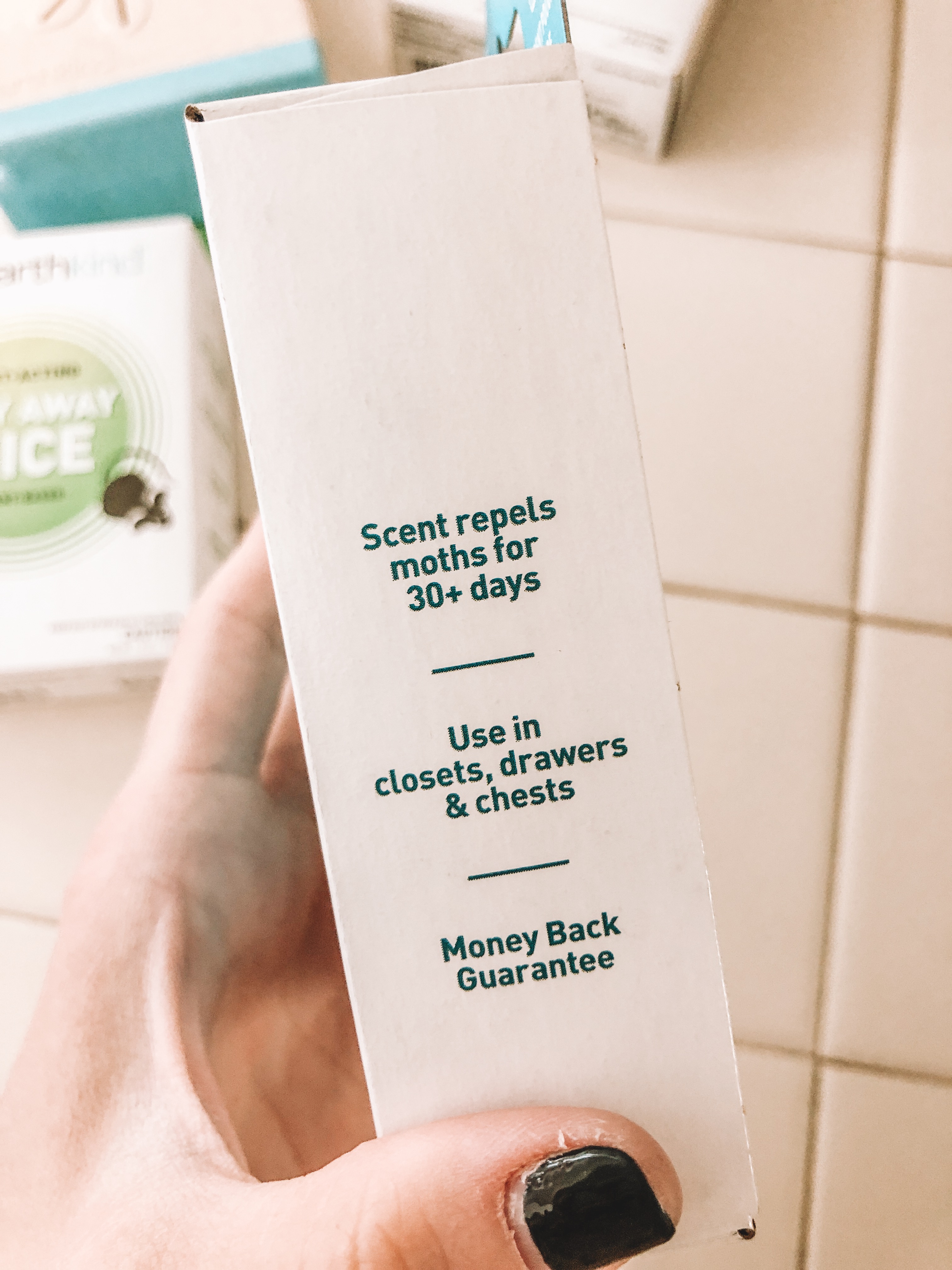 Stay Away uses a pouch method: a little bag of filler treated in the botanical oils with specifically- selected scents to keep different types of critters away, depending on the box. My sample included pouches for mice, spiders, moths, and, yes, those dreaded ant creatures.
