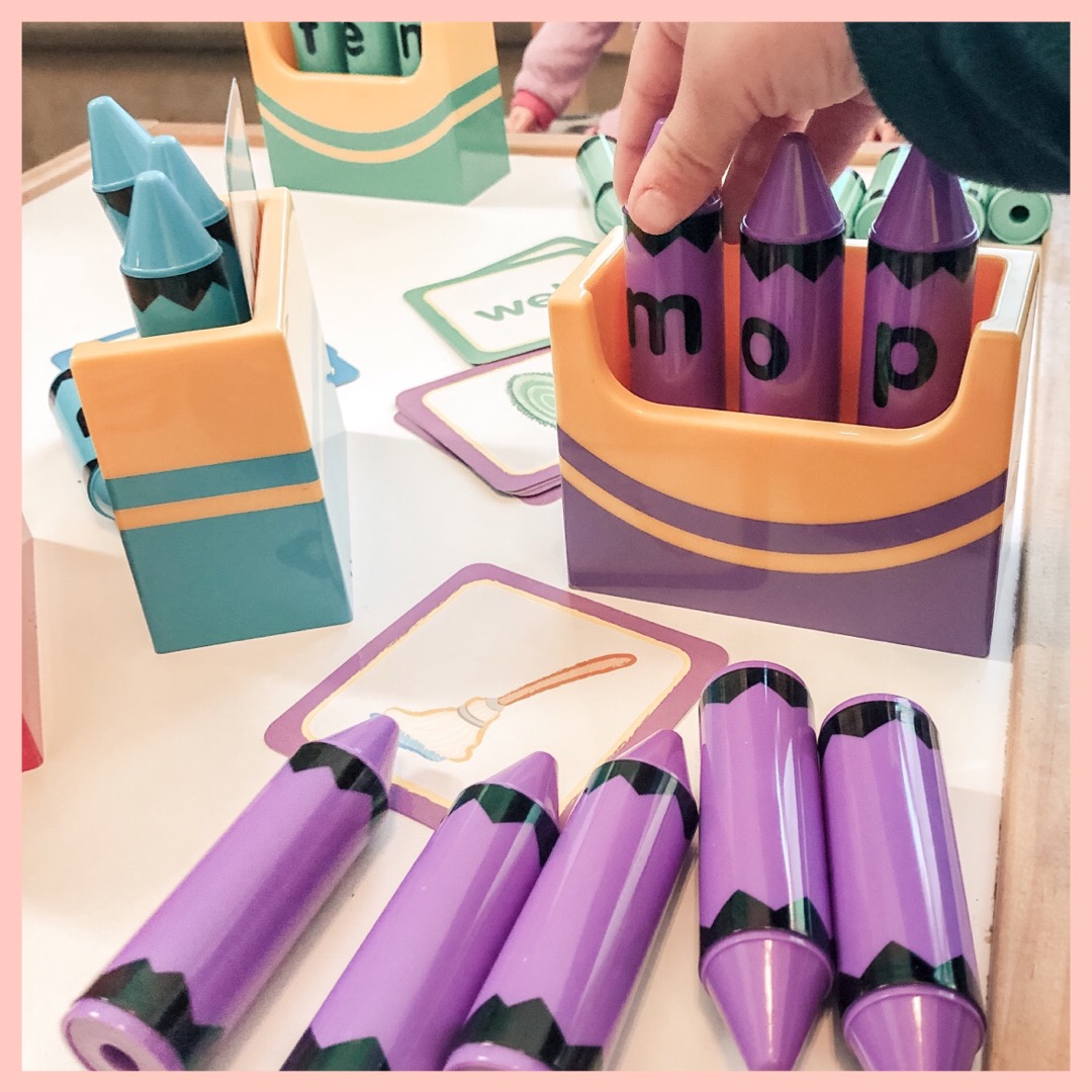 – Both kids really love clicking the crayons into the boxes. It makes a great sound!