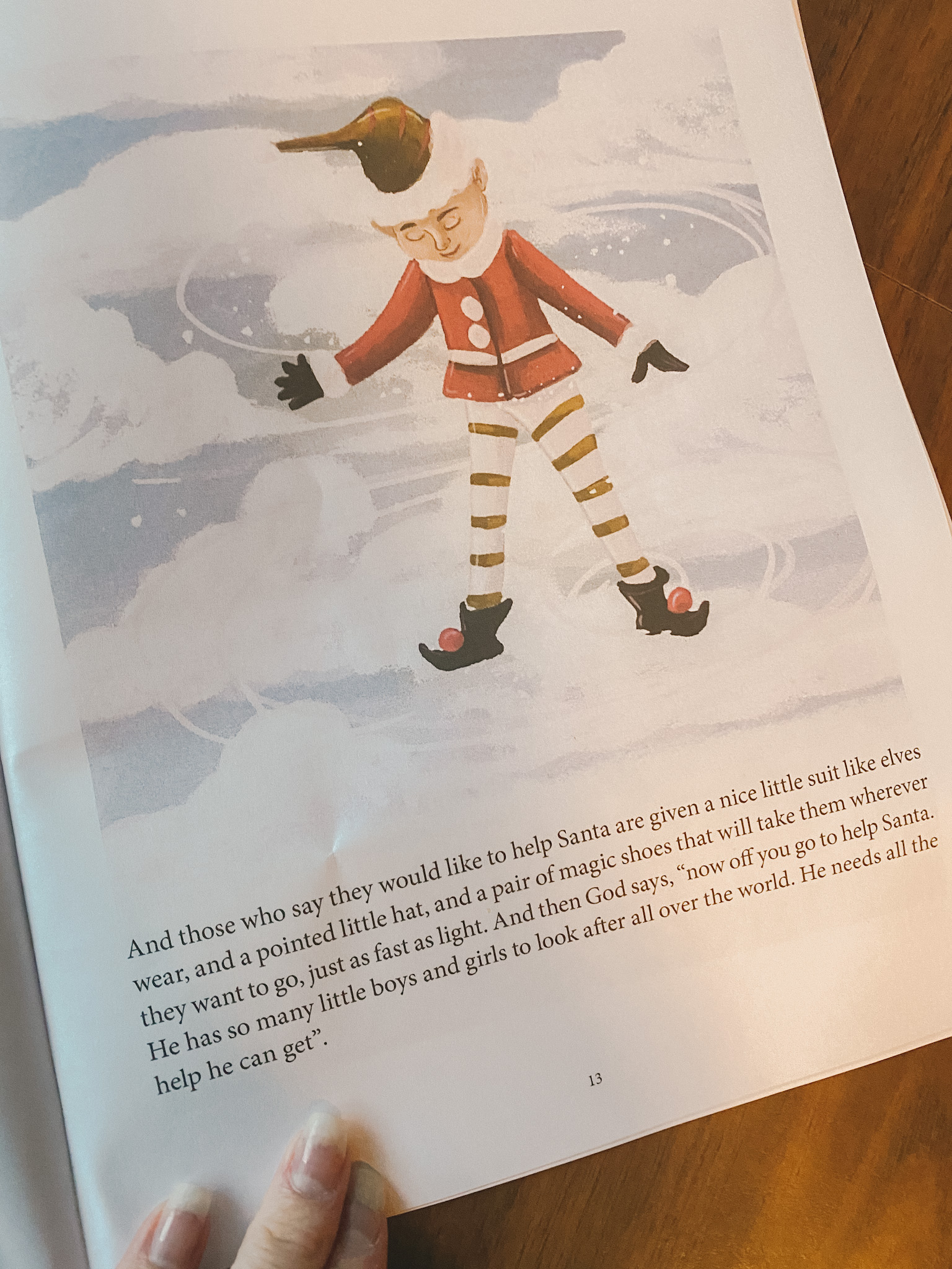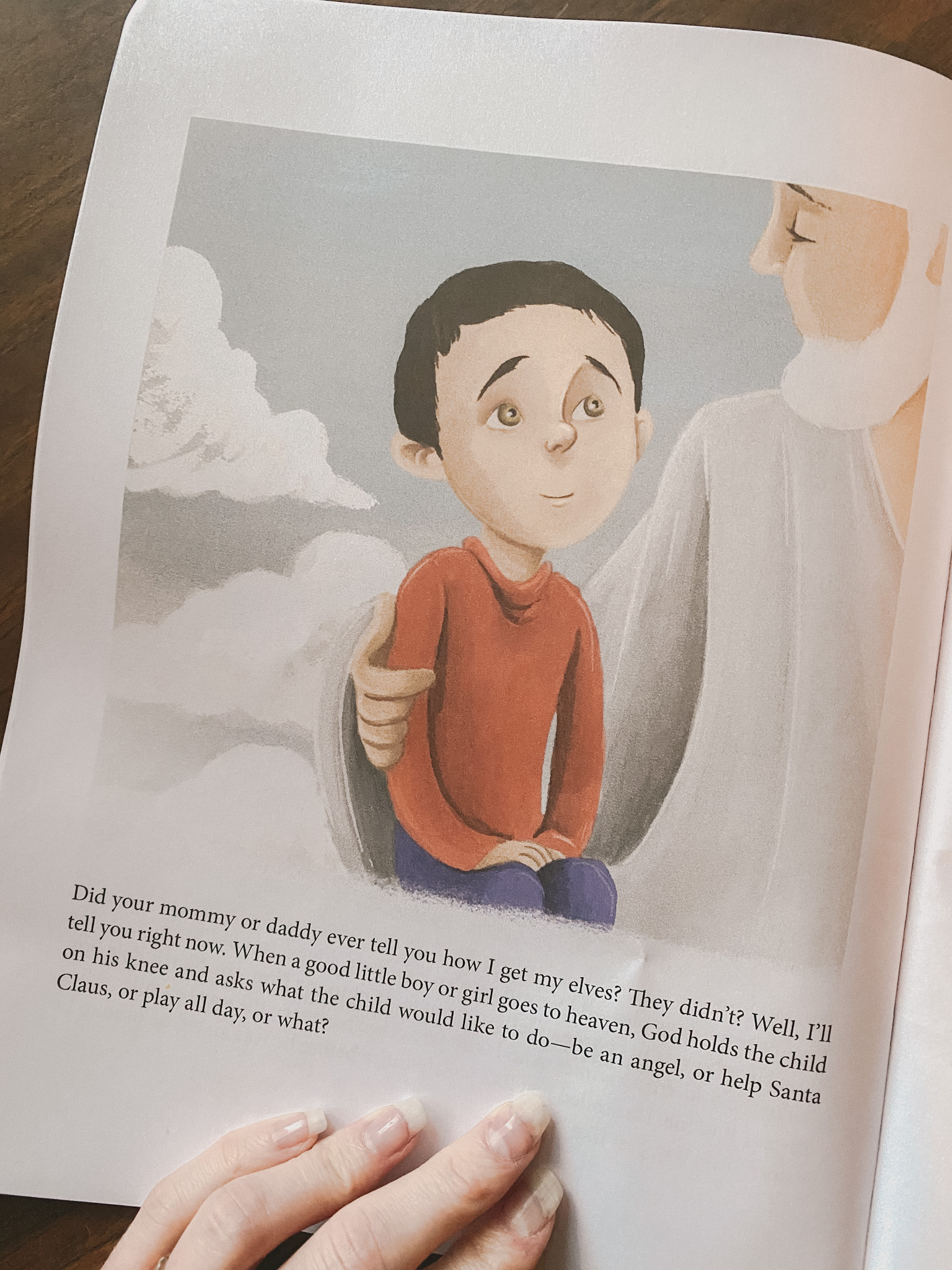 As I mentioned above, the only thing I’d change is the narrative about how Christmas elves came to be. The father in the story (writing as Santa) tells the young boy that when little kids die, they turn into angels and God gives them the choice of becoming Santa’s elves or angels who play all day.