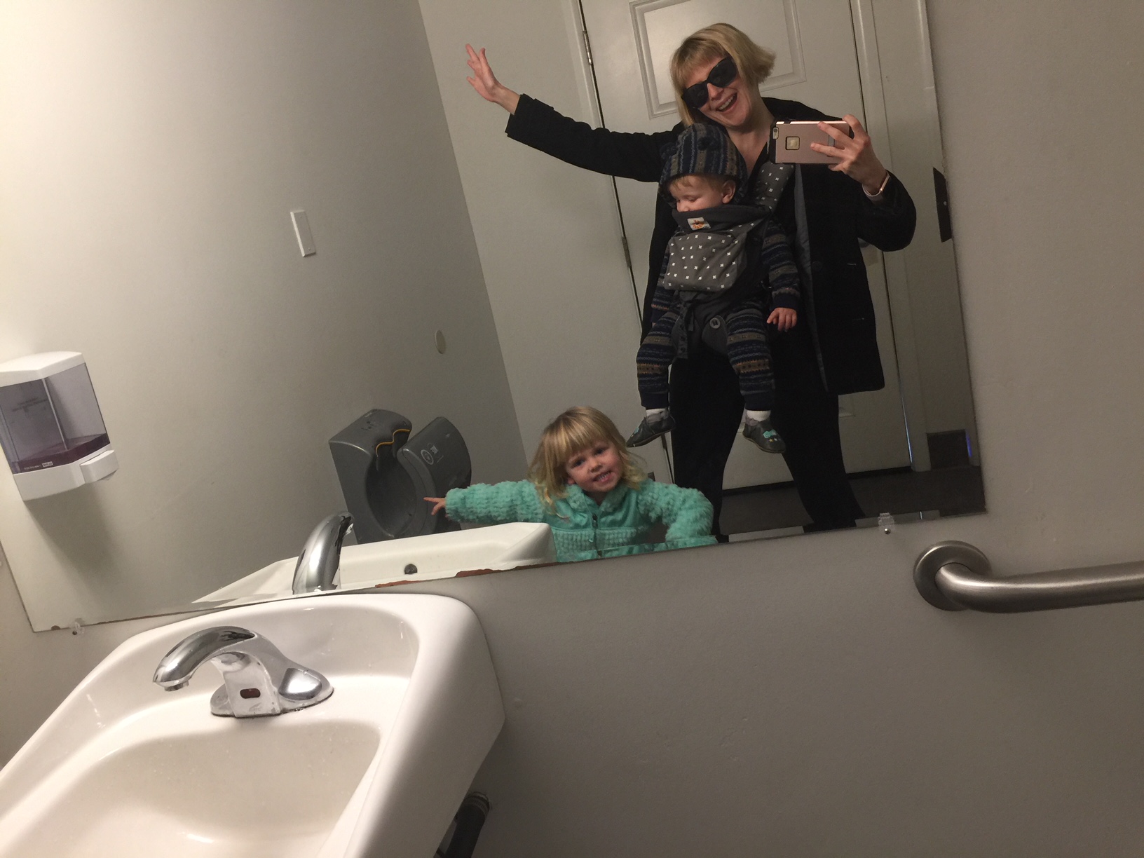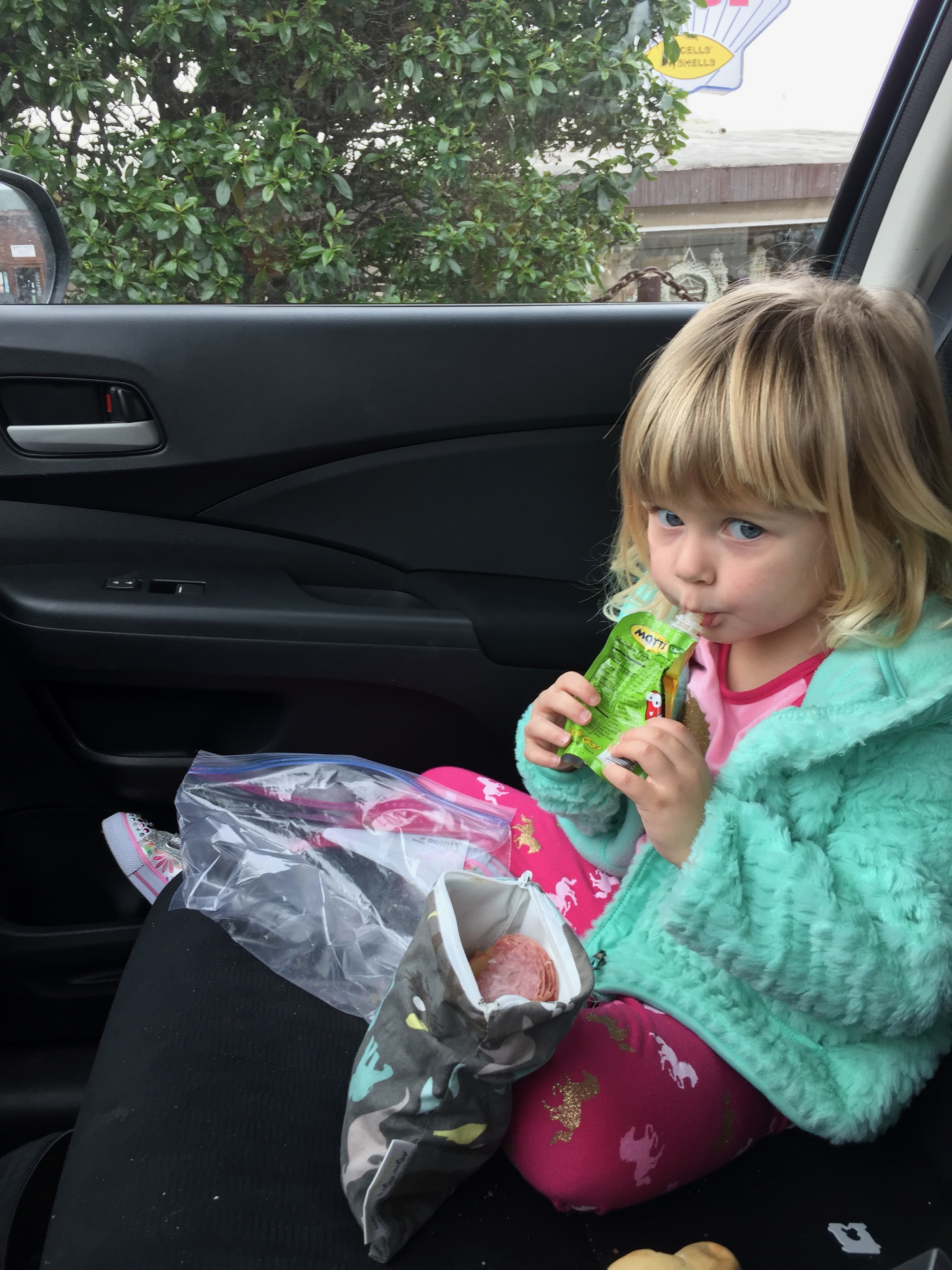 So I mad-grab for little person shoes and socks and snacks and waters, click the kids in their car seats – and GO.
