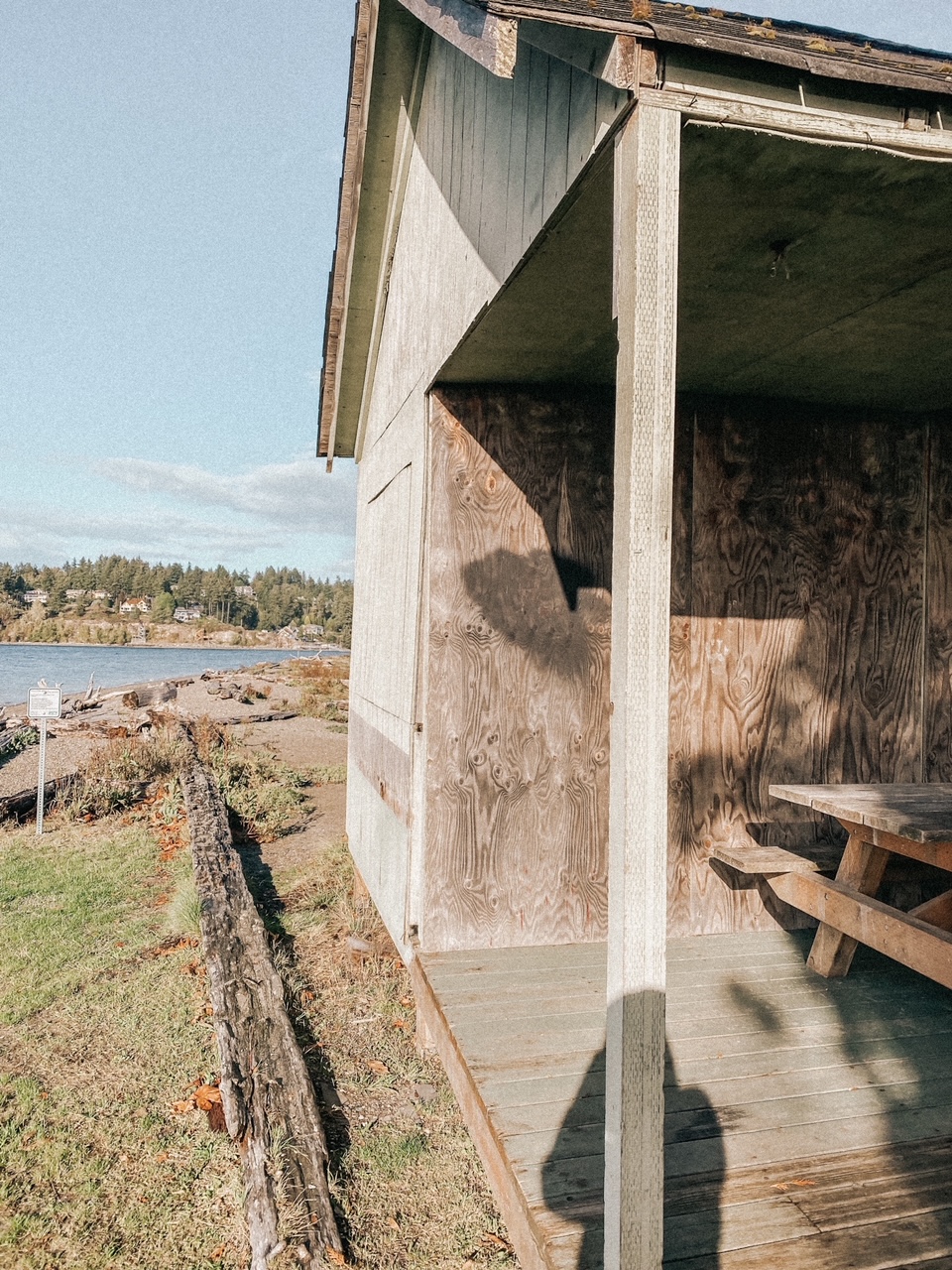 It started with a question, as stories often do, when one year ago I asked the internet what this little boarded-up building at Fox Island’s sandspit was all about.