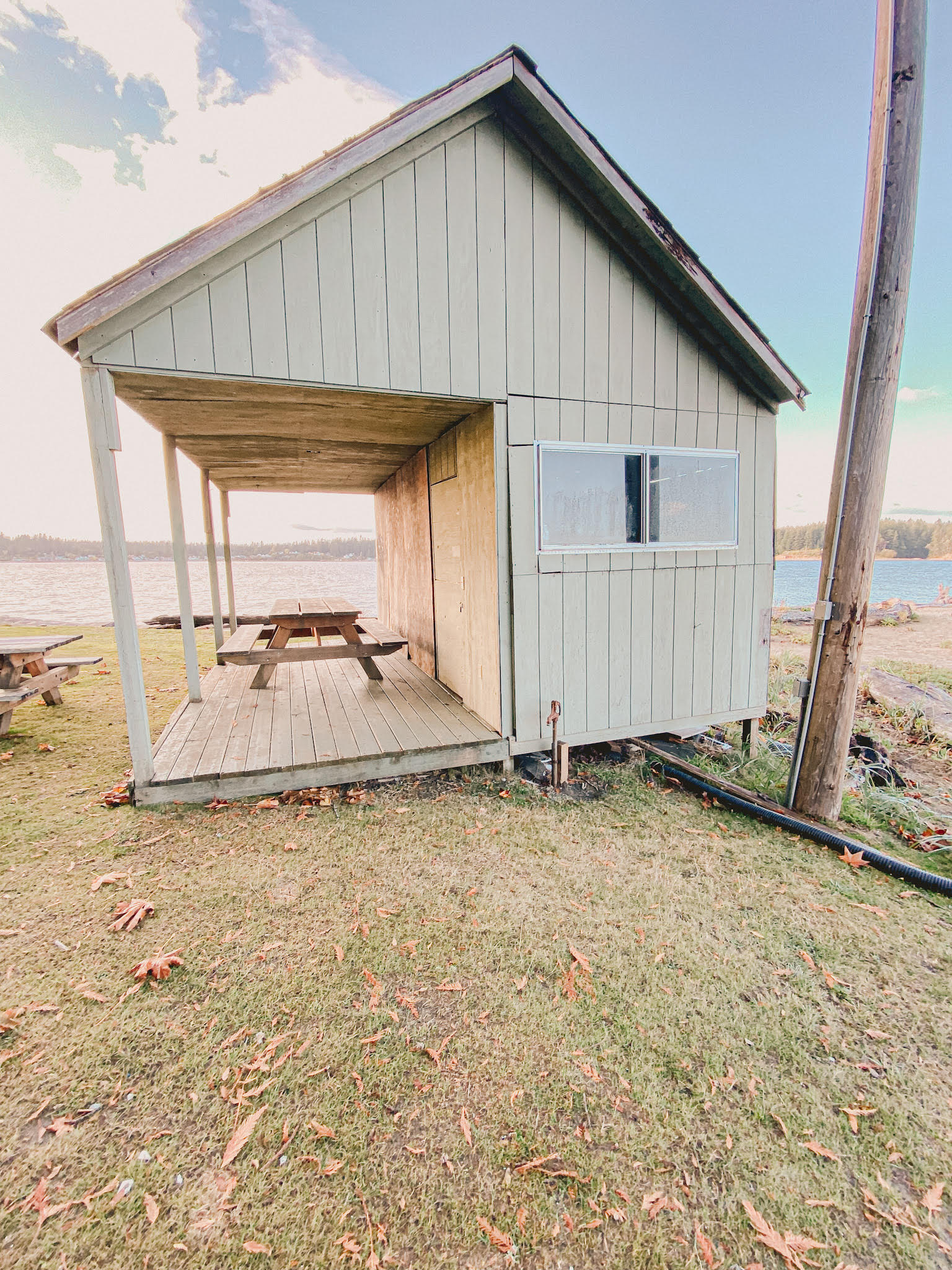 After I first wrote about my little moss-topped mystery building, I soon learned that, no, it was not a turn-of-the-century homesteader house where Pa and his 13.5 kids rowed to town for supplies while Ma wove potato sack dresses for the twins from her chair in what could arguably be the coolest waterfront home in the history of ever (!!!).