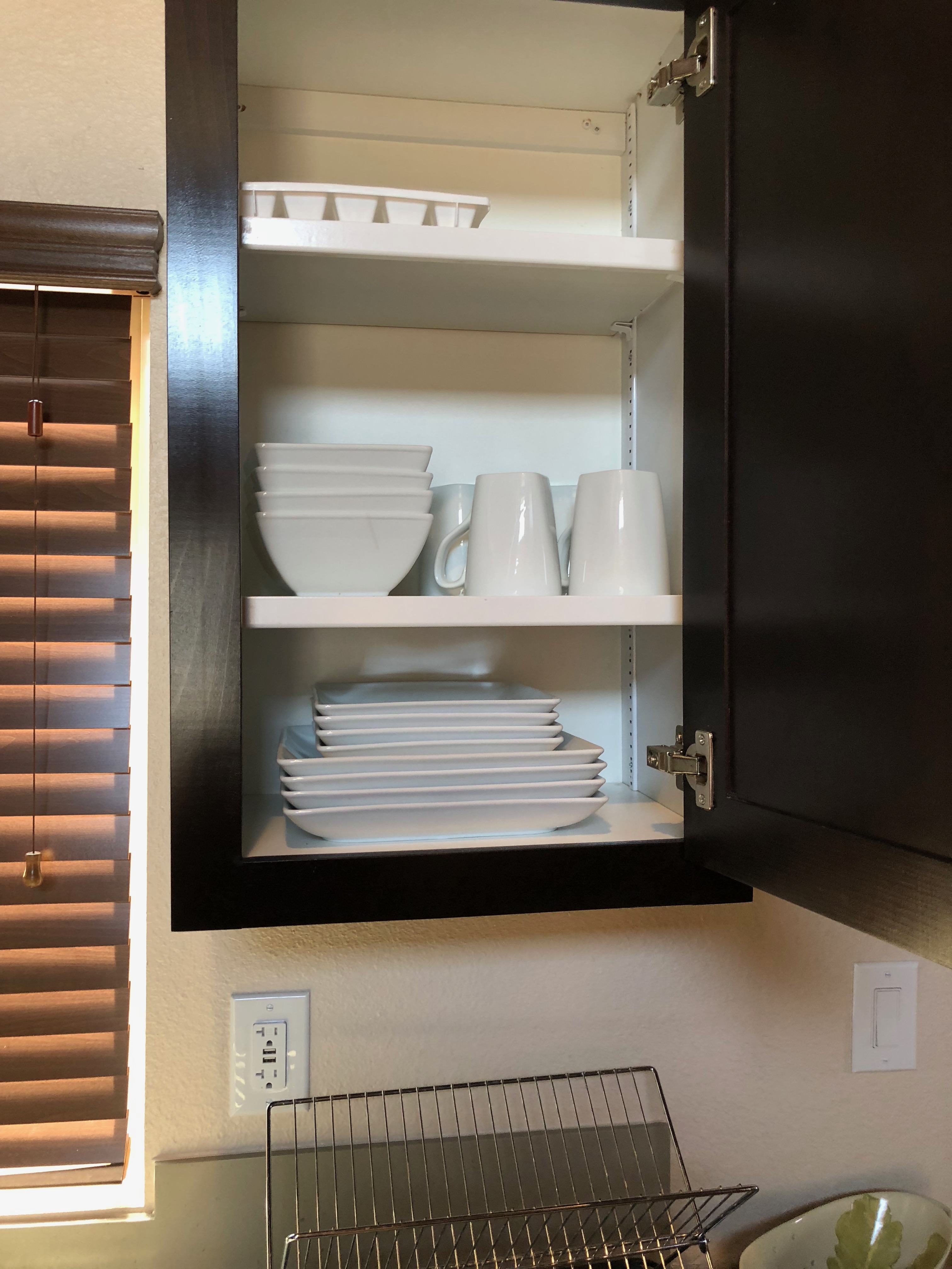 And it was also well equipped: Flatware in the drawers, wine glasses and coffee mugs in the cabinets, dish soap and sponges under the sink and even a junk drawer complete with little corn-on-the-cob handles!