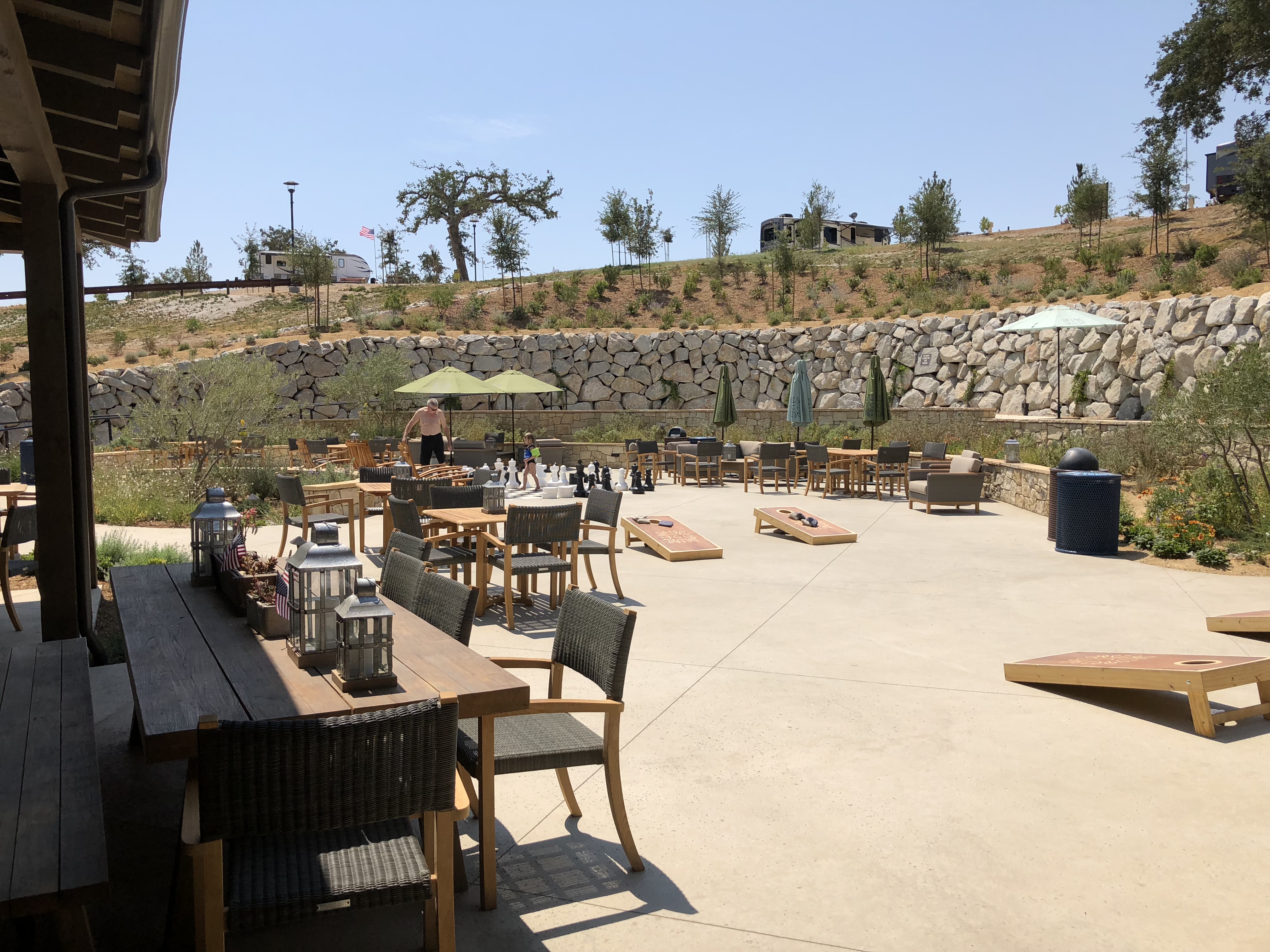 Parts of the grounds are still under construction, but it wasn’t like a noisy construction site or anything. So that was nice. The pictures on the website show lush foliage and big trees everywhere, and while that may be the setting once all the landscaping matures, it’s still fairly California country at the moment with native grasses and freshly planted trees. However, there are established oaks there. I recommend checking out any of the RV sites off Ramas De Roble on the map to take advantage of that shade.
