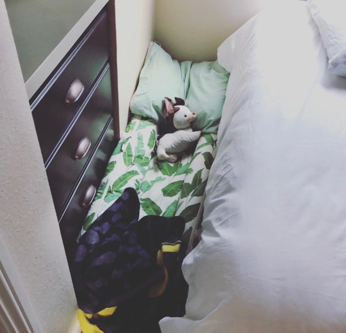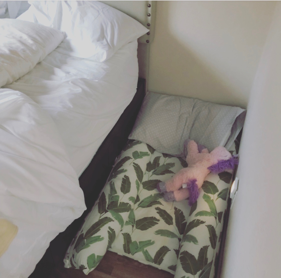 The kids and I brought our two trusty DockATot Grands (which we previously reviewed here) that we always travel with now. (Shameless plug: You can save $10 off one a DockATot via our affiliate link ). The kids slept in those on the floor, albeit a little crammed. They didn’t mind tho. That’s just more cozy, right? The bedroom itself came with a remote controlled air conditioner/heater unit, a closet and a built in dresser. It also had a lamp and side table that I had to move to the closet to make the other DockATot fit.