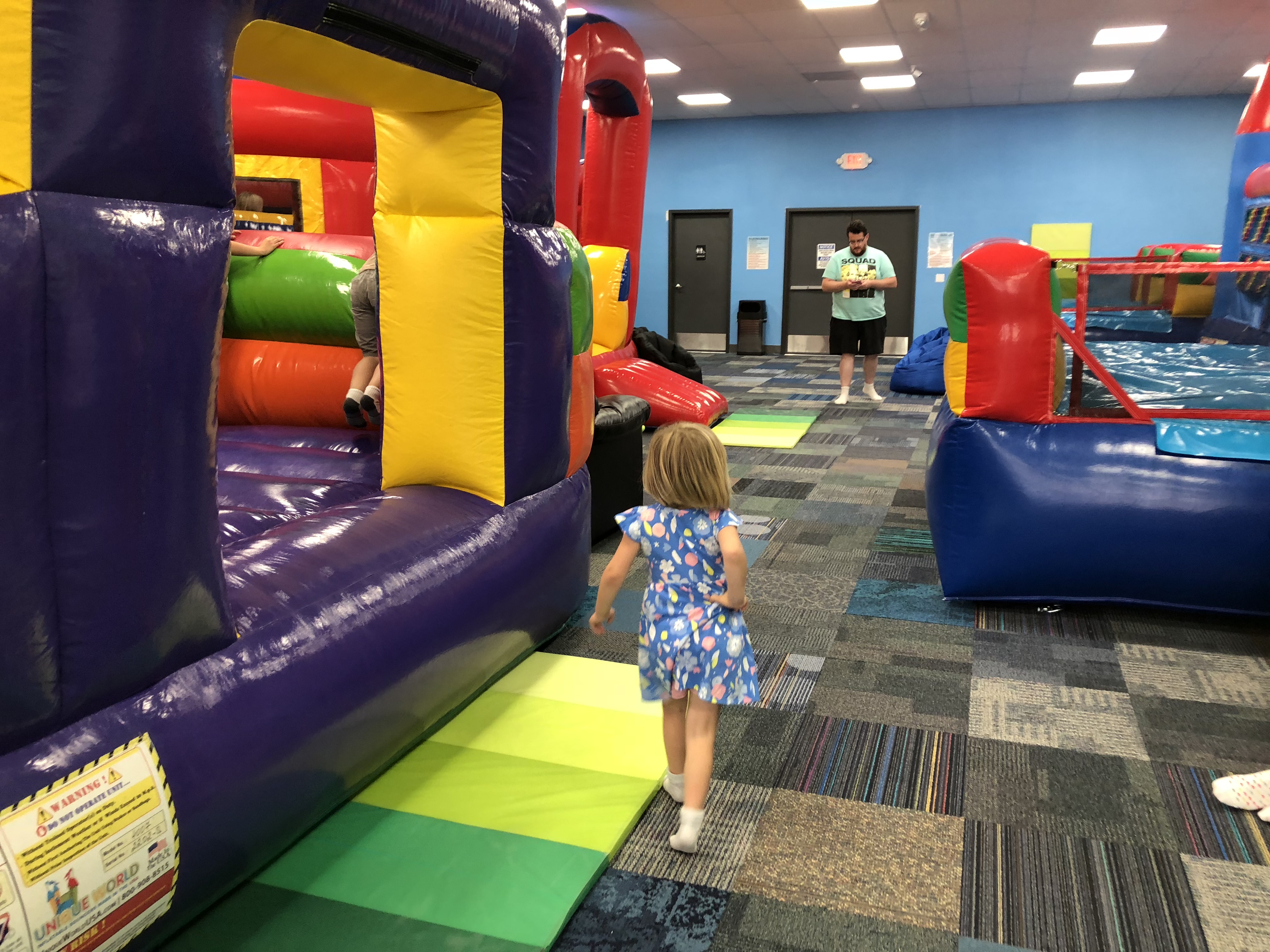 I take Clara and Wyatt there (ages 2 and 4) and I like that they can both bounce together and I can sit on the thoughtfully placed (and super comfy) couches to watch them. No uncomfortable plastic seats for parents! They totally get us. You can even plop down in a bean bag chair if you want. The kids and I can easily stay at Hop’s for two hours, maybe even three. Which, as far as tiny human entertainment goes, is fairly epic in my book.
