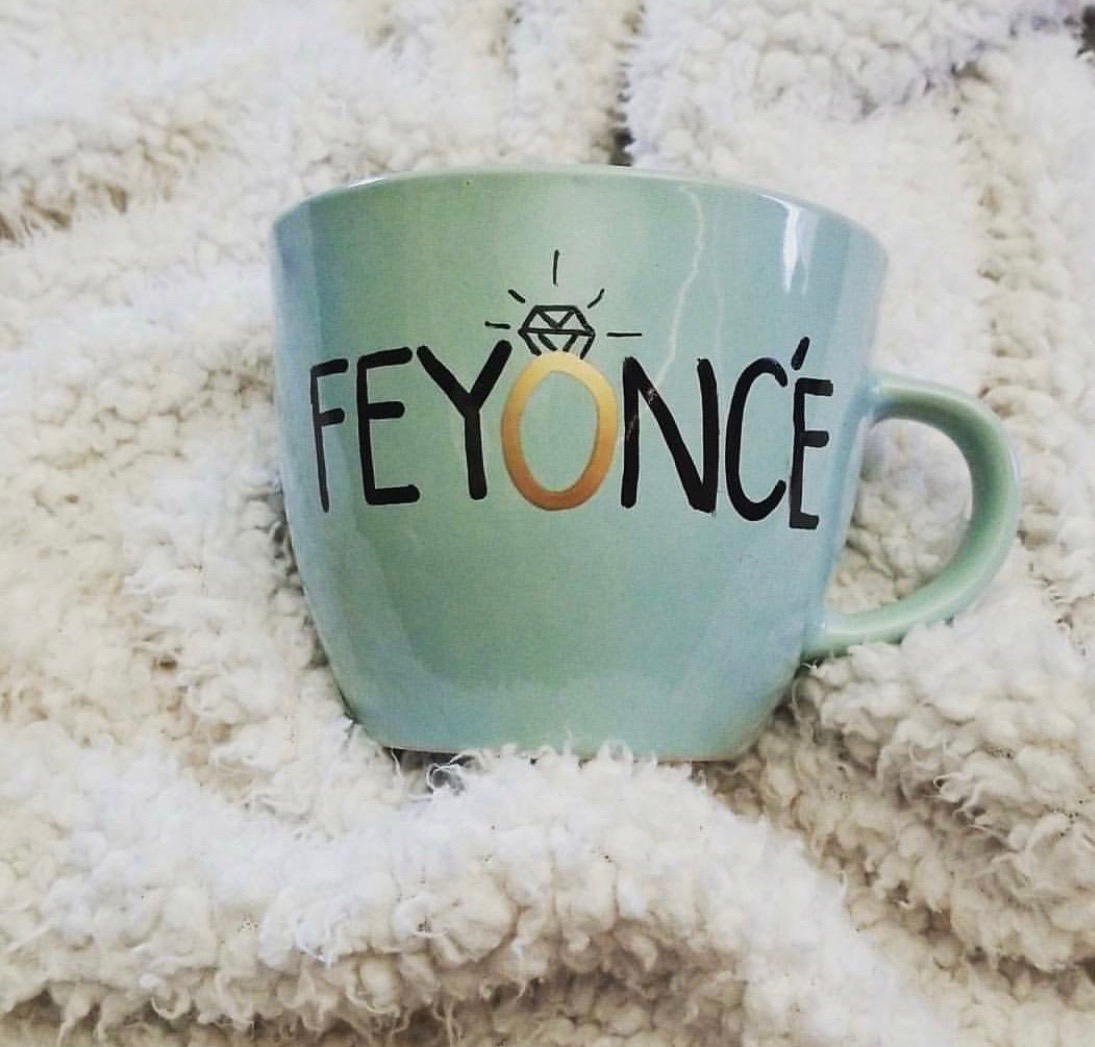 I’ve purchased a pink-glitter dipped wine glass from her before (fact: wine is always better with a little glitter) and also have a fierce coffee tumbler on order. I love my pink bling cup!