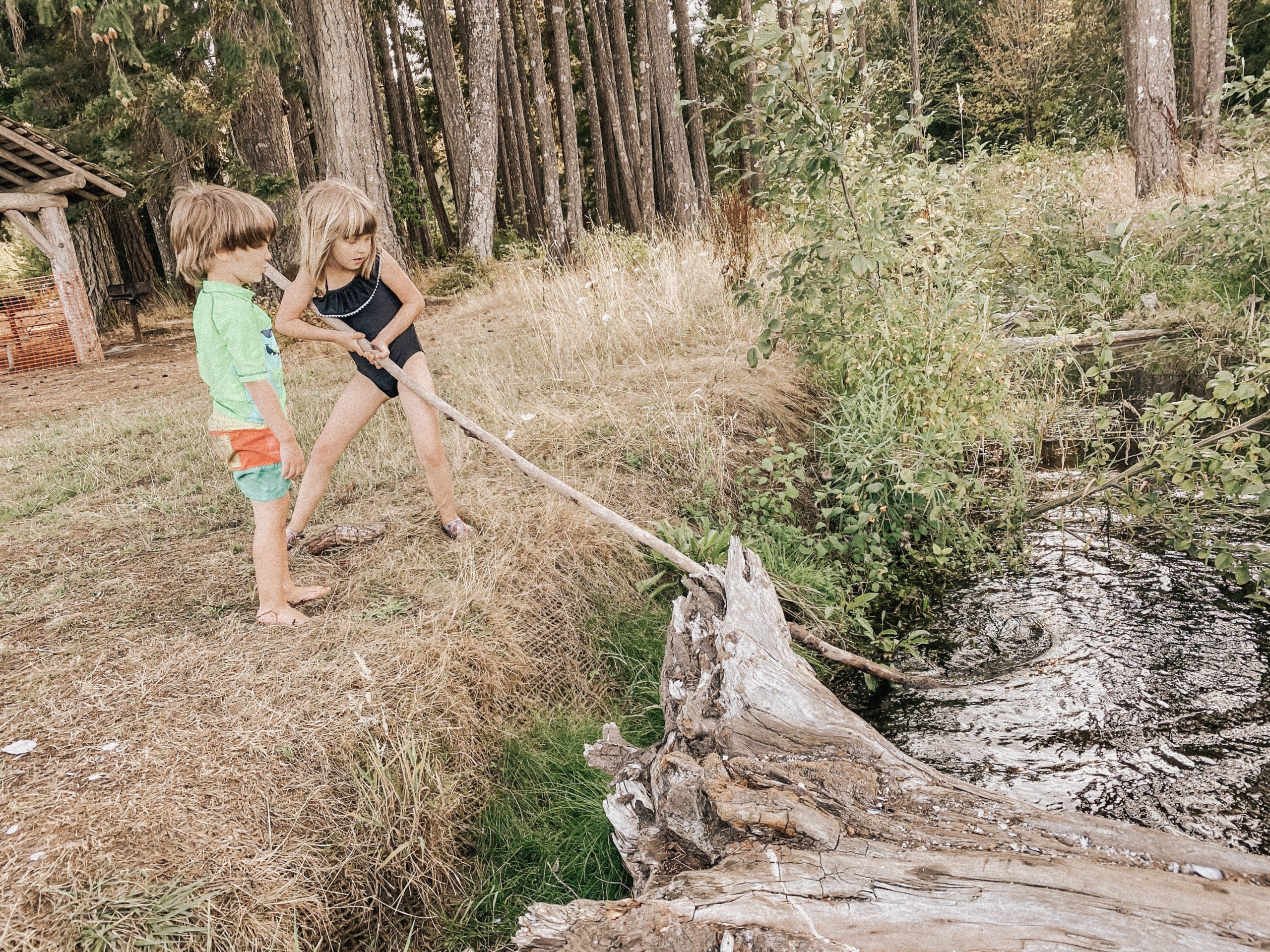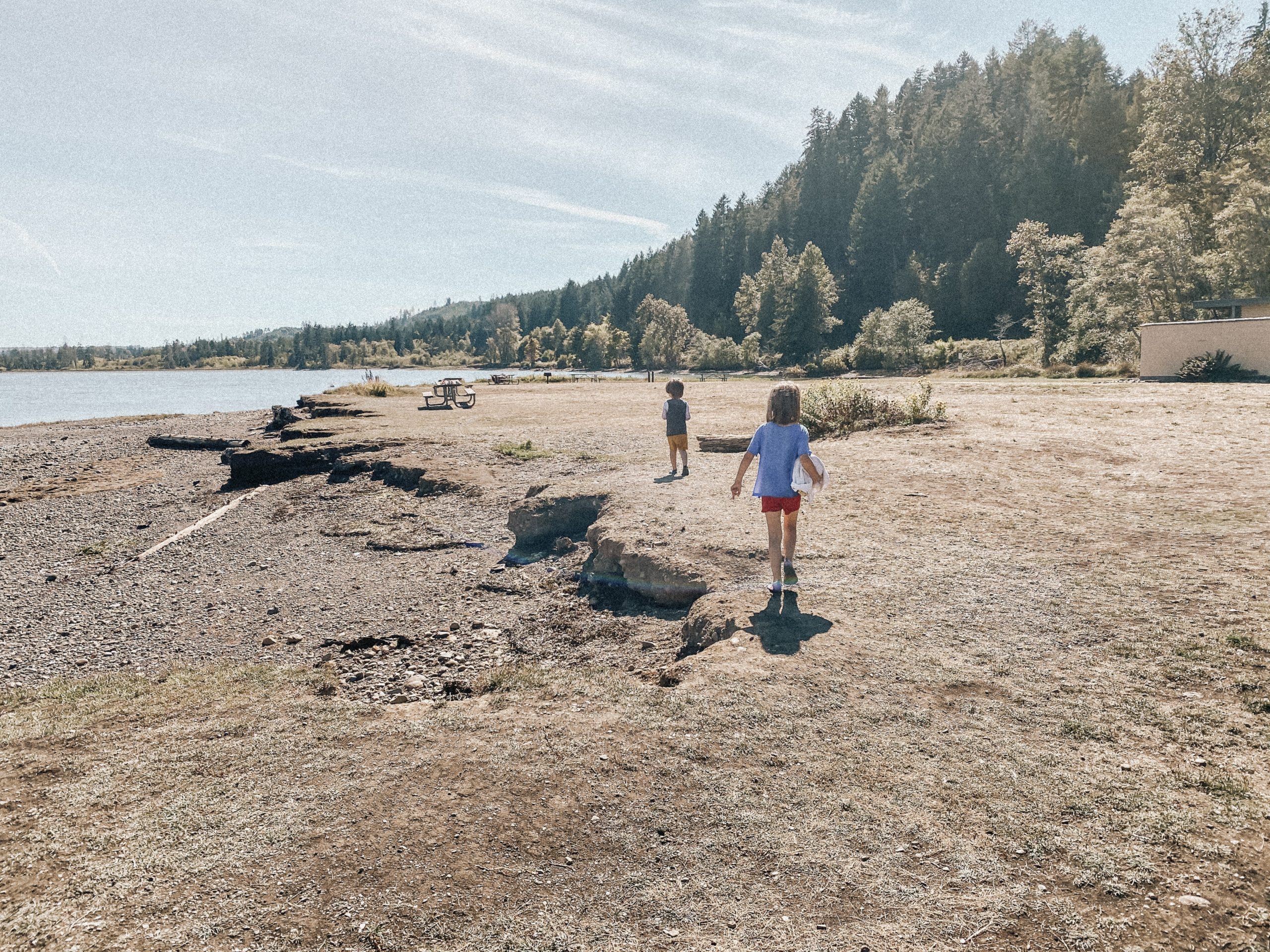 Potlatch is an 84-acre park with camping and water access with scenic fallen logs and tree-capped hillsides. It also has … buried treasure! Read on to see what we found 🙂