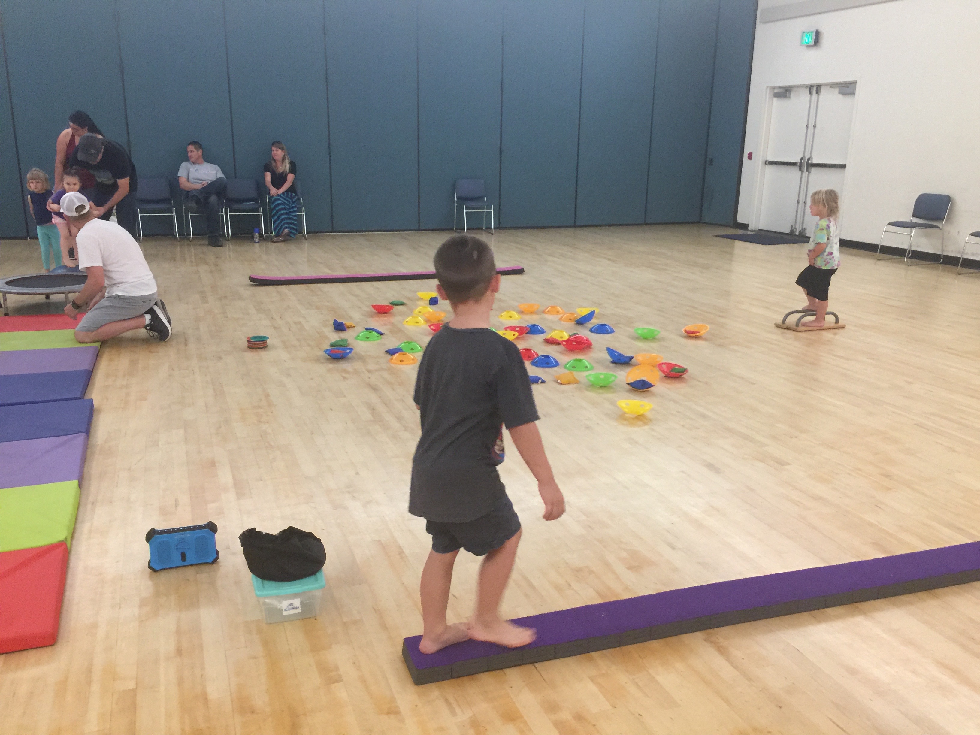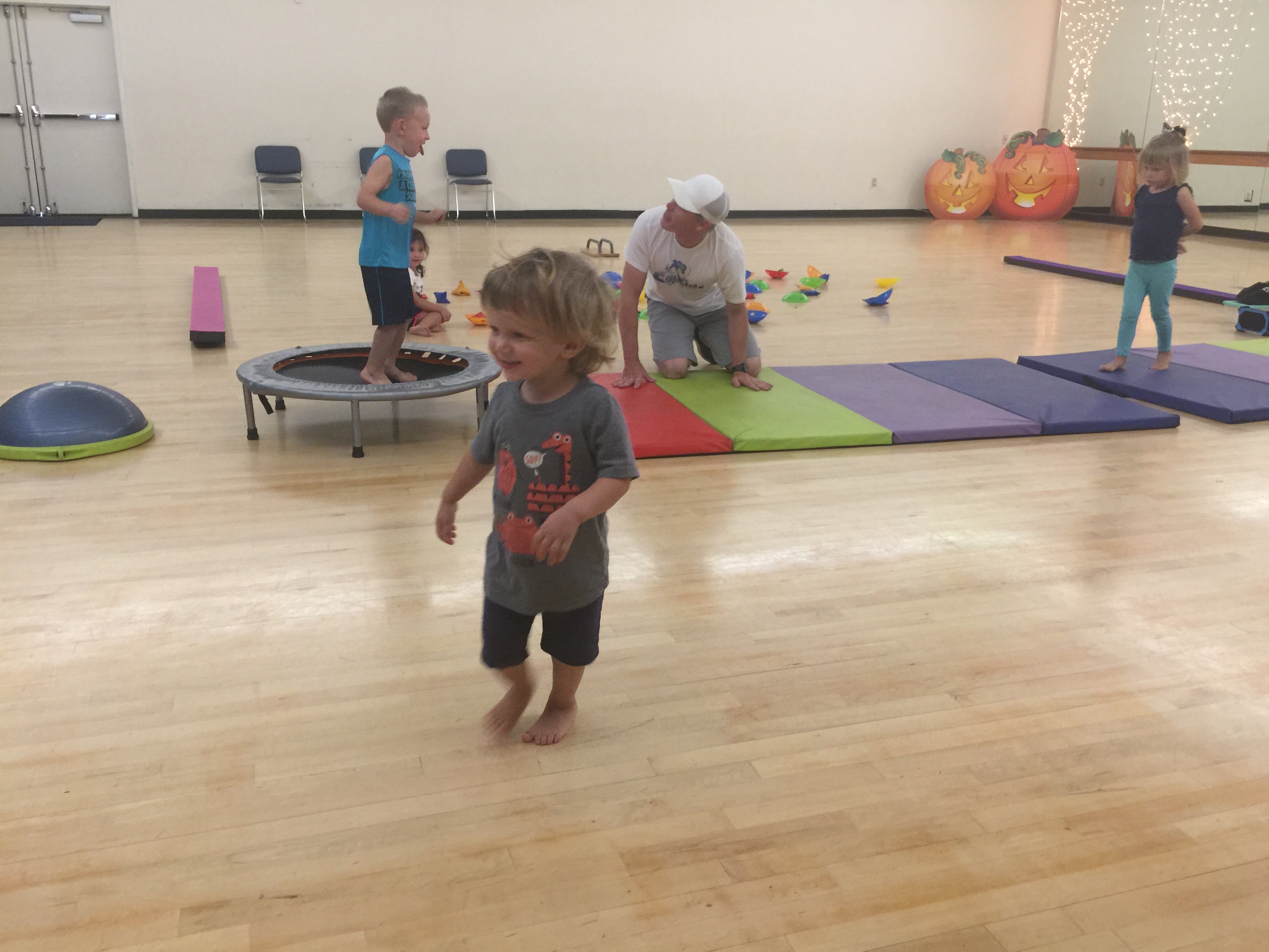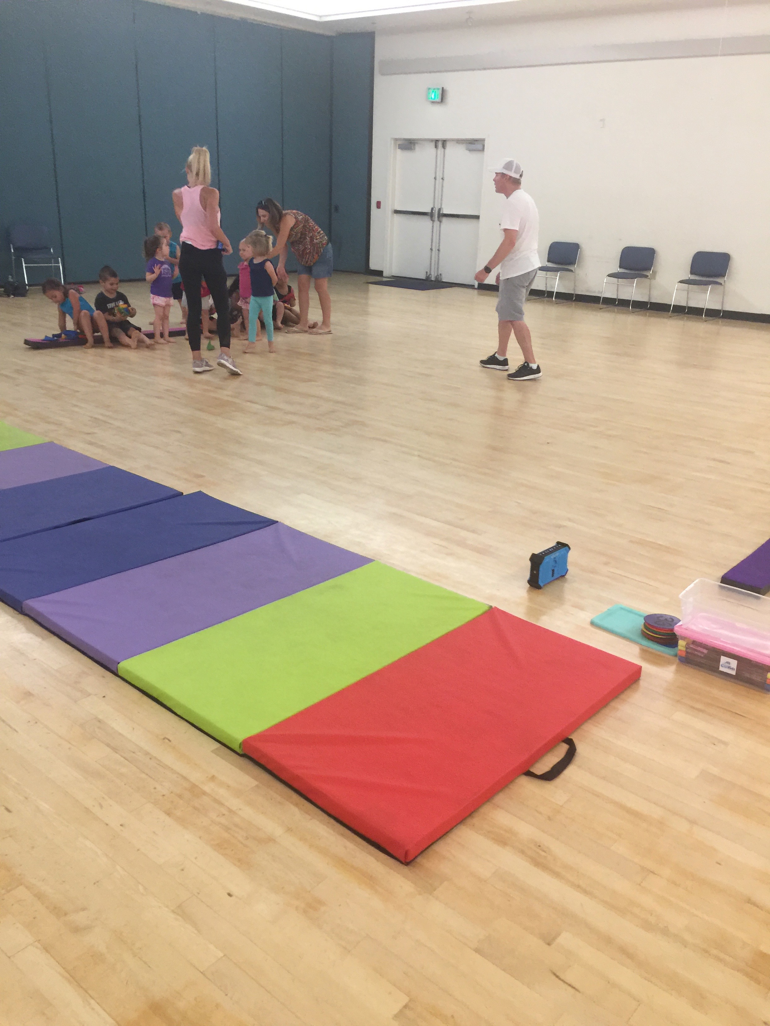 We went on Thursday evening a couple of weeks ago. The class included circle time, warm-ups, running relays, tumbling, games, singing and dancing. Brittney also provided upbeat music from her phone that played through a snazzy portable speaker.