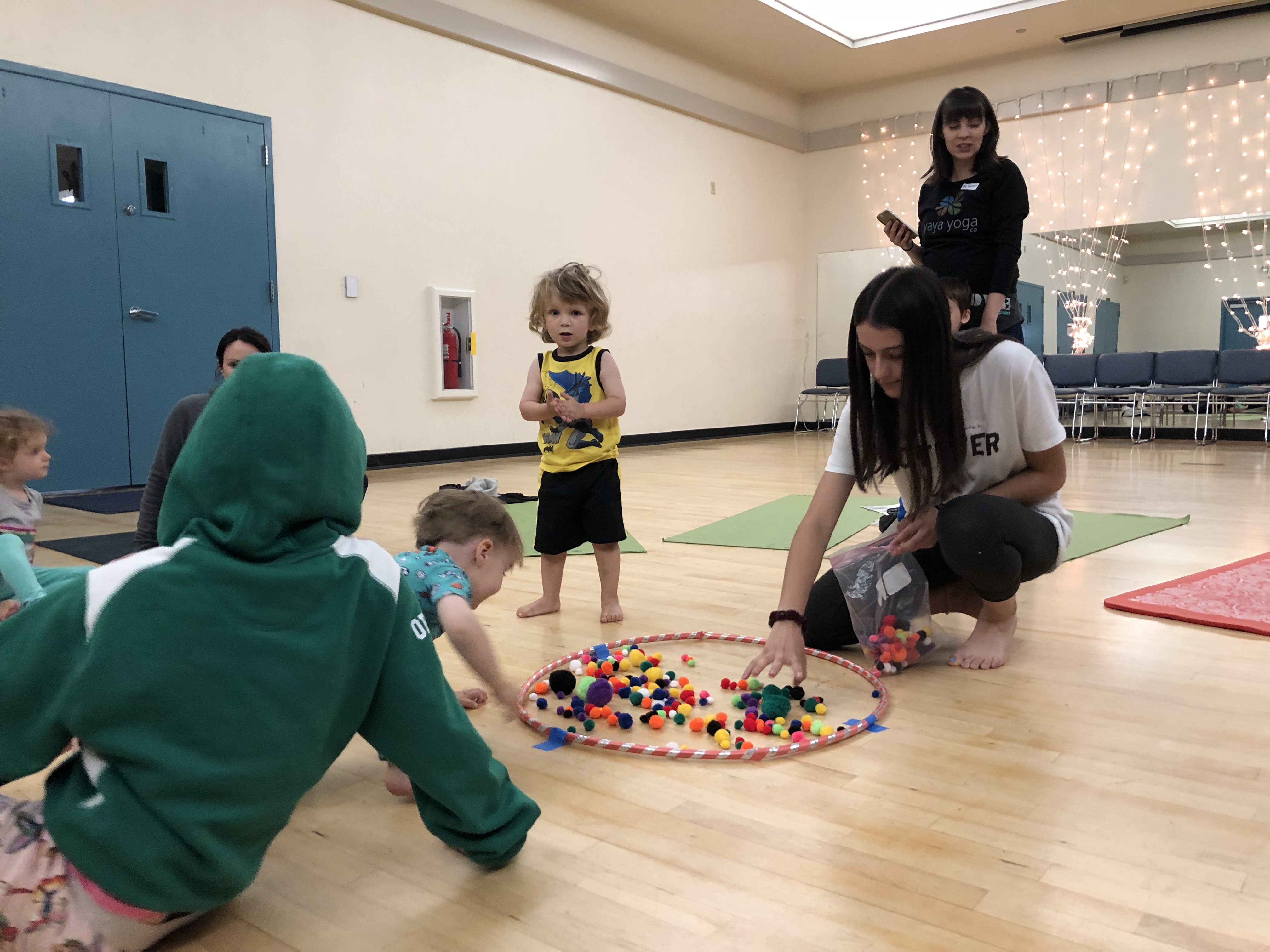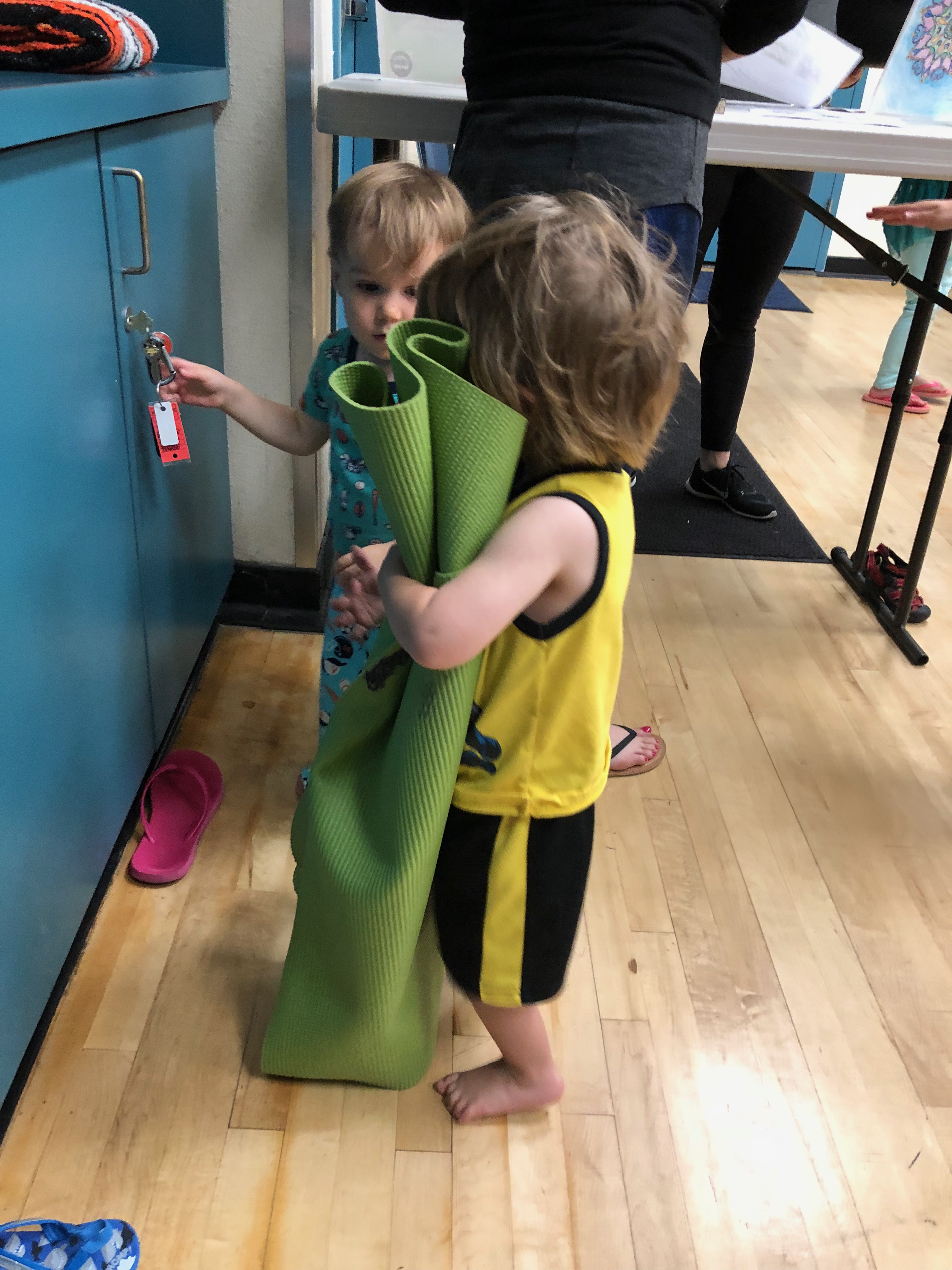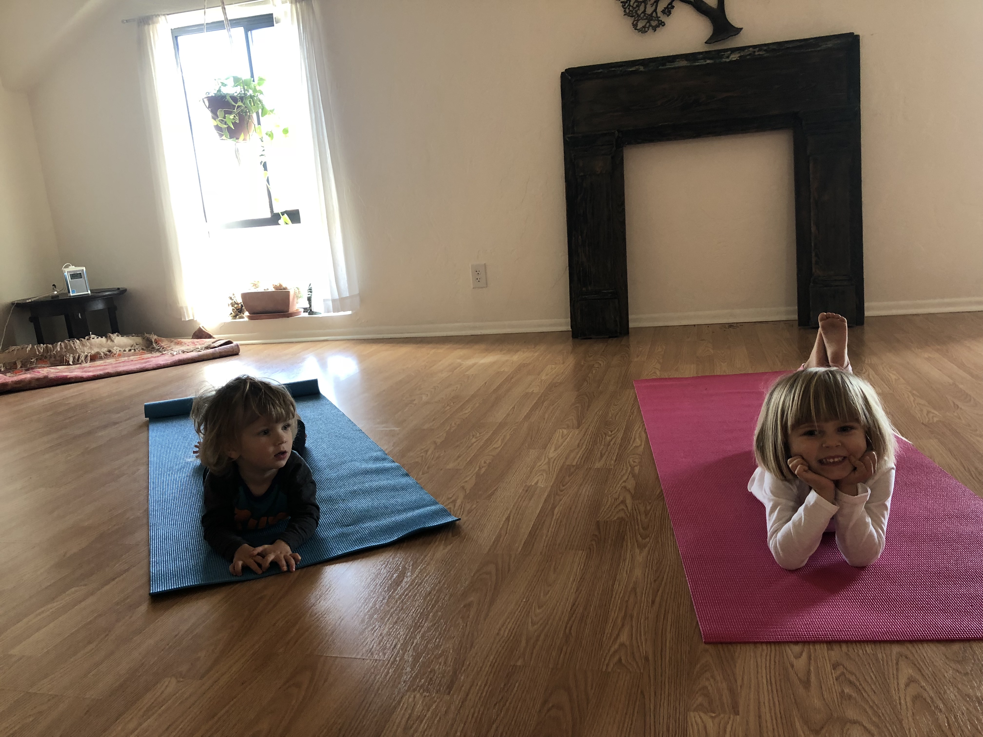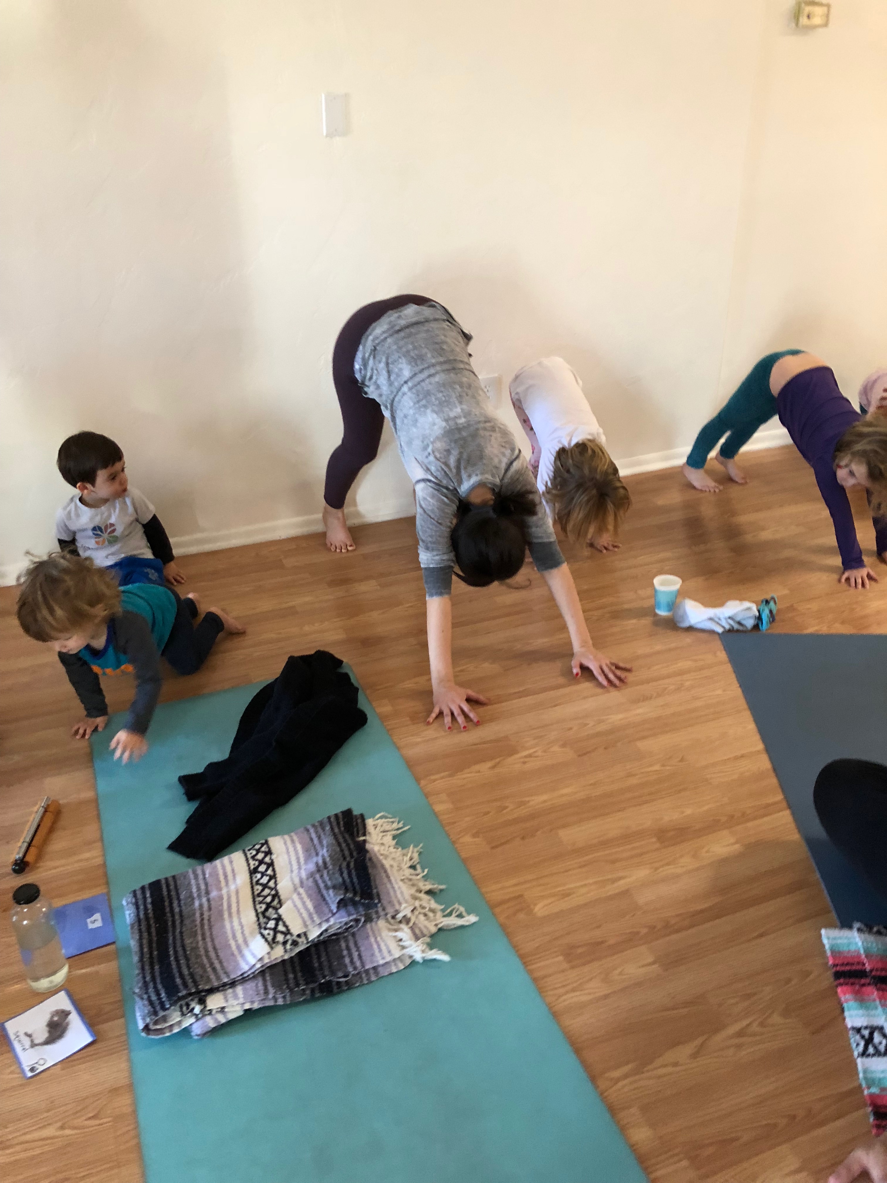 As a yoga teacher, she’s open to all types of learning styles and makes a point to say in the beginning of class that every child approaches class differently — and that’s OK. Her reminder that parent participants shouldn’t feel like their kid should be acting one way or another during the lesson is comforting, again setting the scene for some good yoga vibes.