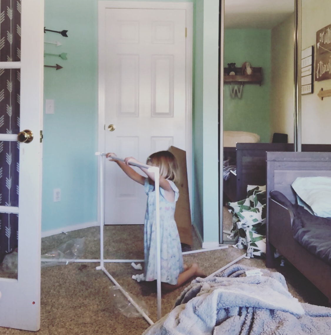This playhouse is special, not only because it’s super cute and the kids love it, but also because it completes 2-year-old Wyatt’s big boy room!