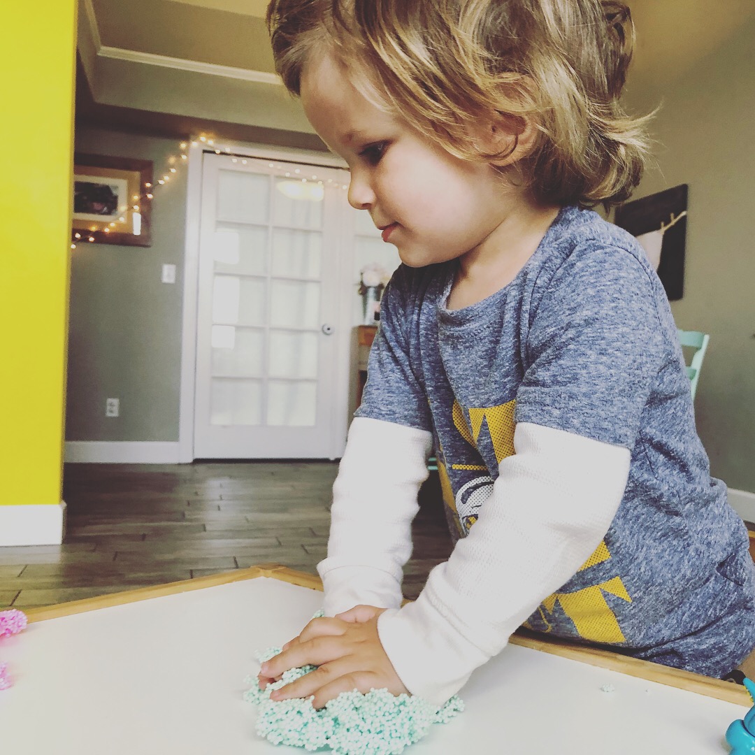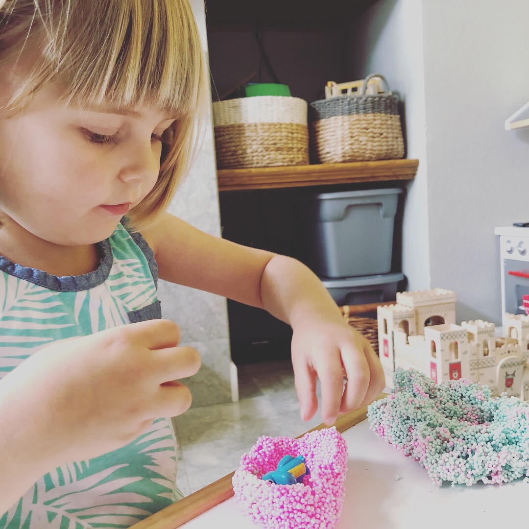 Overall, this toy provided my kids with a lot of opportunities for tactile fun and creativity. My 2 year old liked to squish it and roll it, while my 4 year old enjoyed making little houses for the animals. And it apparently never dries out and can be used a bunch. #winning.