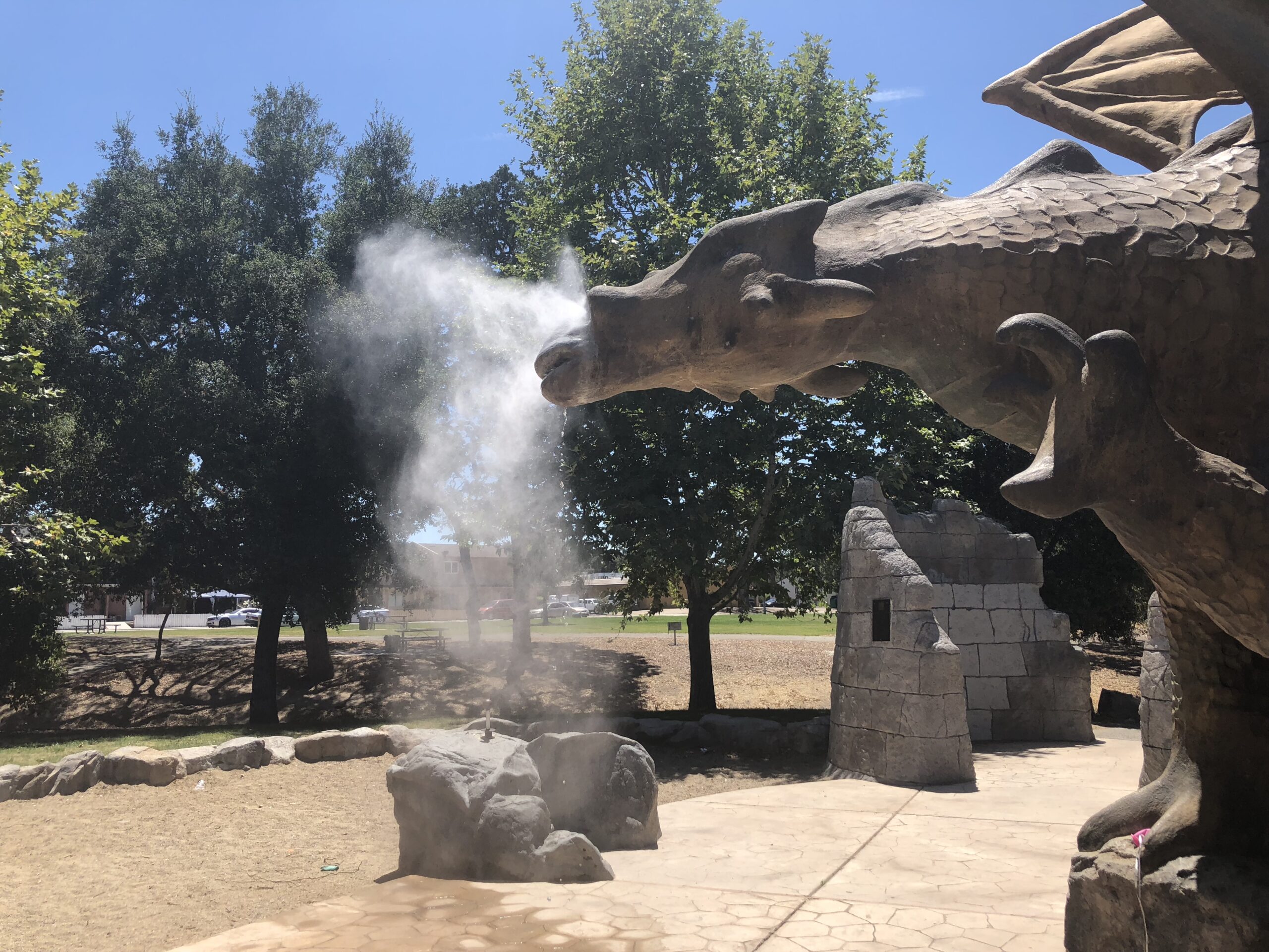 The city told me that sometimes the dragon blows cool mist out of its nose as a spray park feature. It had been off for years because Paso’s hard-water buildup in the pumping equipment causes problems.