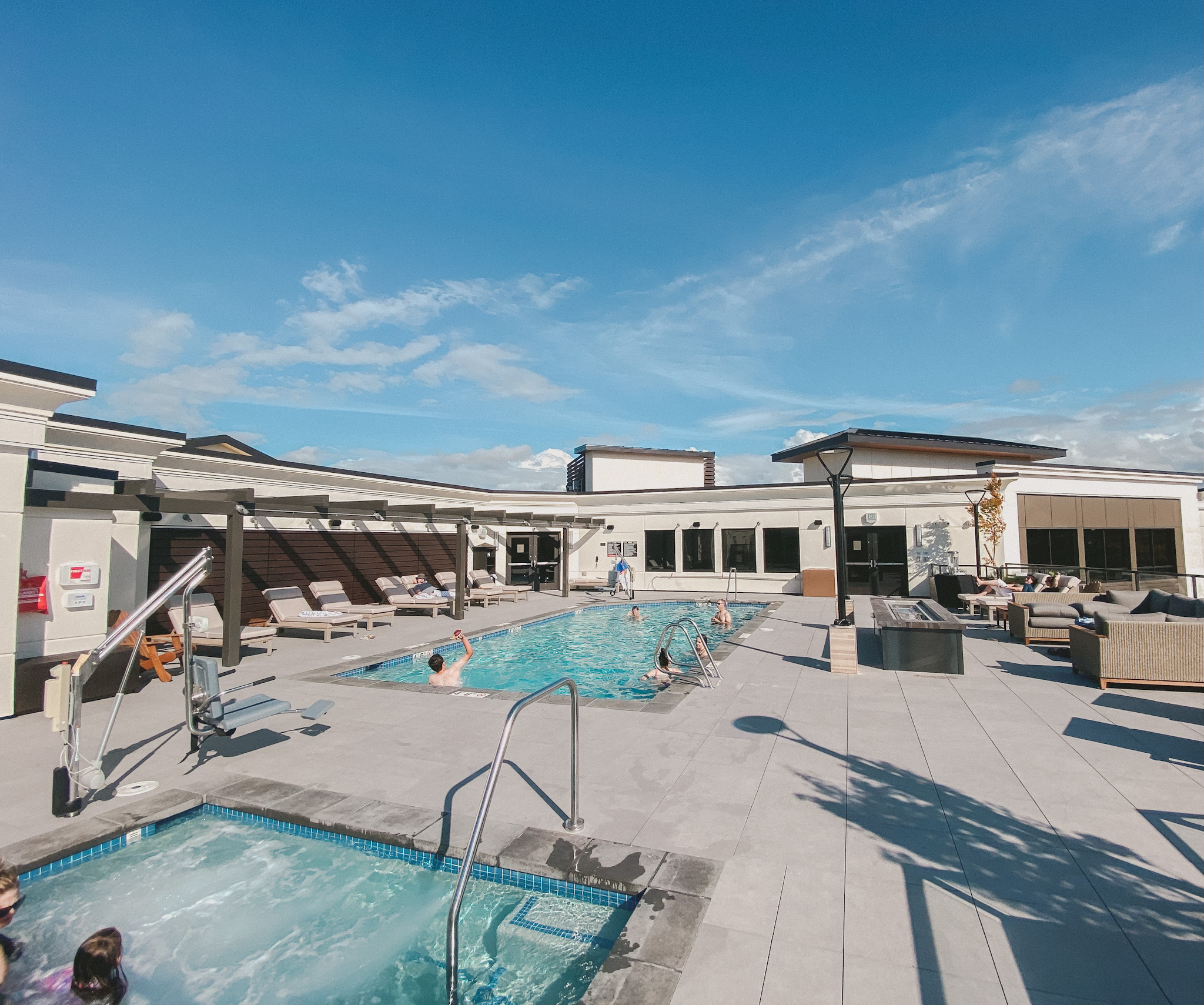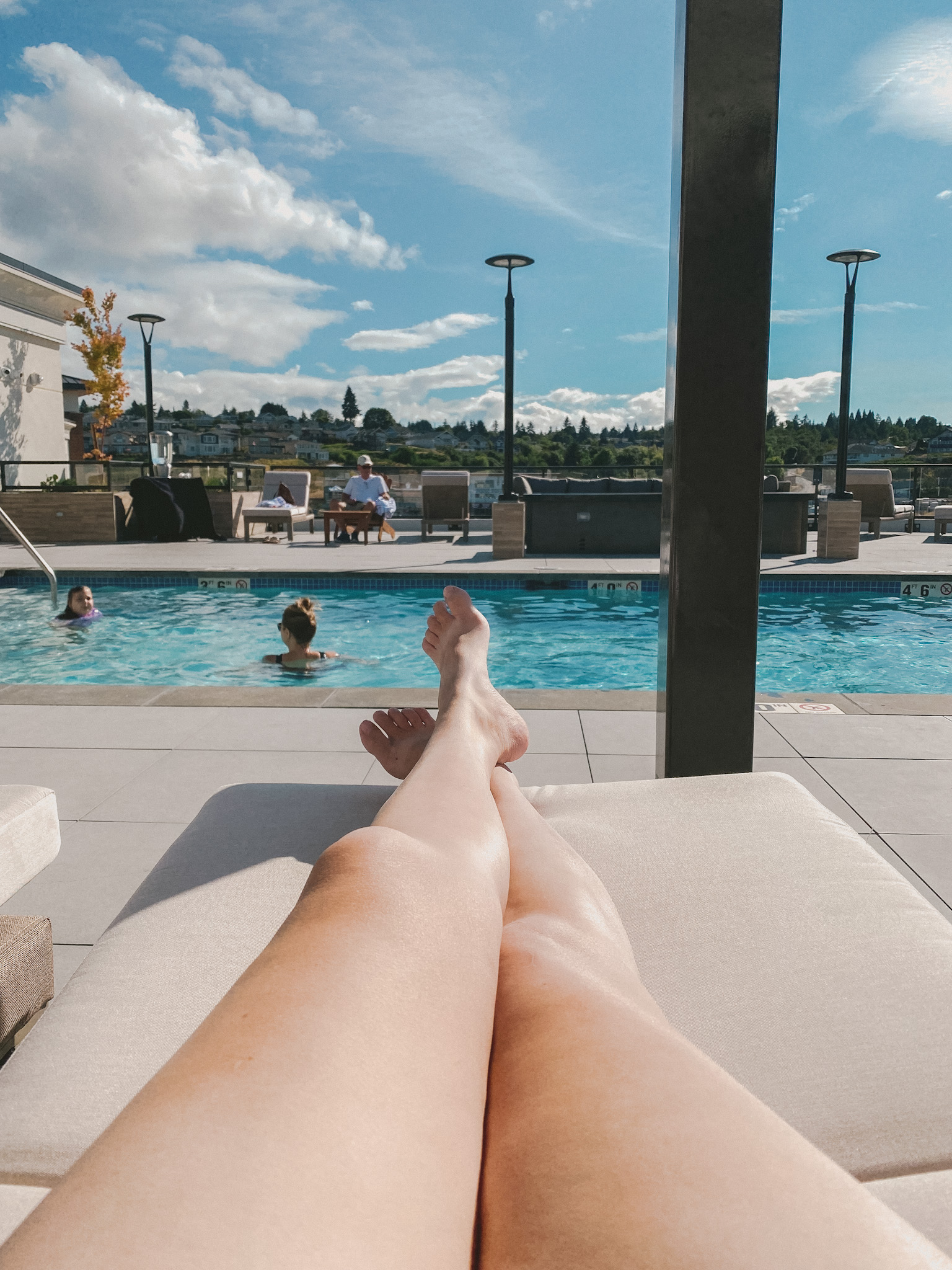 And now for my favorite part of any hotel – the pool. It’s my understanding that outdoor hotel pools are a rarity in the PNW, and rooftop pools are even more scarce. But this hotel checks off both those boxes. In fact, the entire pool terrace was drop-dead gorgeous and even included an outdoor couch area with fireplaces. Fancy stuff.