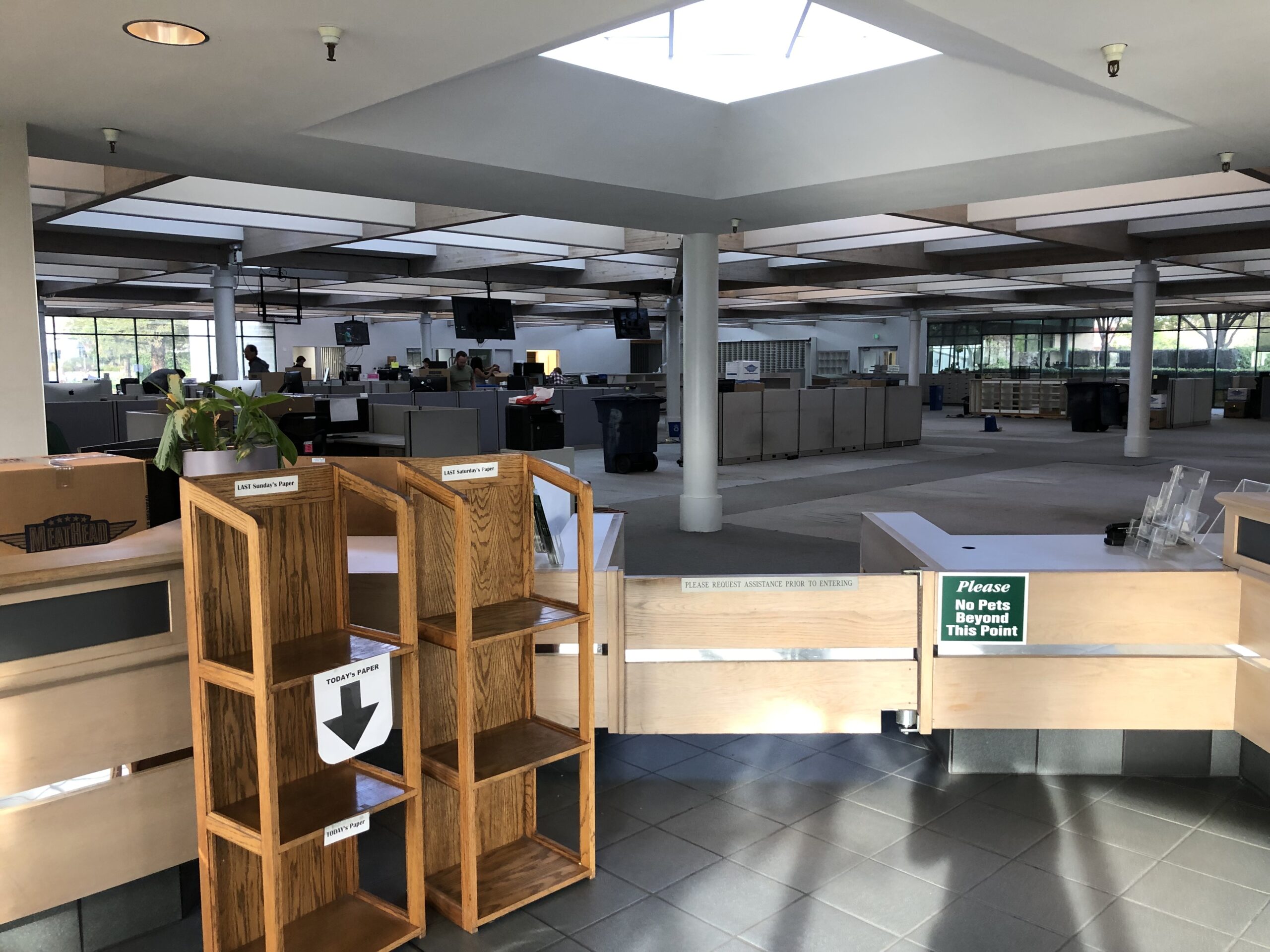 Last night, a group of us said goodbye to 3825 S. Higuera St., The SLO Tribune‘s bright and airy newsroom building with rare tall windows and rows of cubicles that were once our second home. The offices are moving to another, smaller location in town. I don’t have all the stats, but I think our newsroom had around 200 employees at one point – and now there’s 30. This is the reality of our times as advertisers continue to shift their dollars toward online content and away from print (and printing jobs).