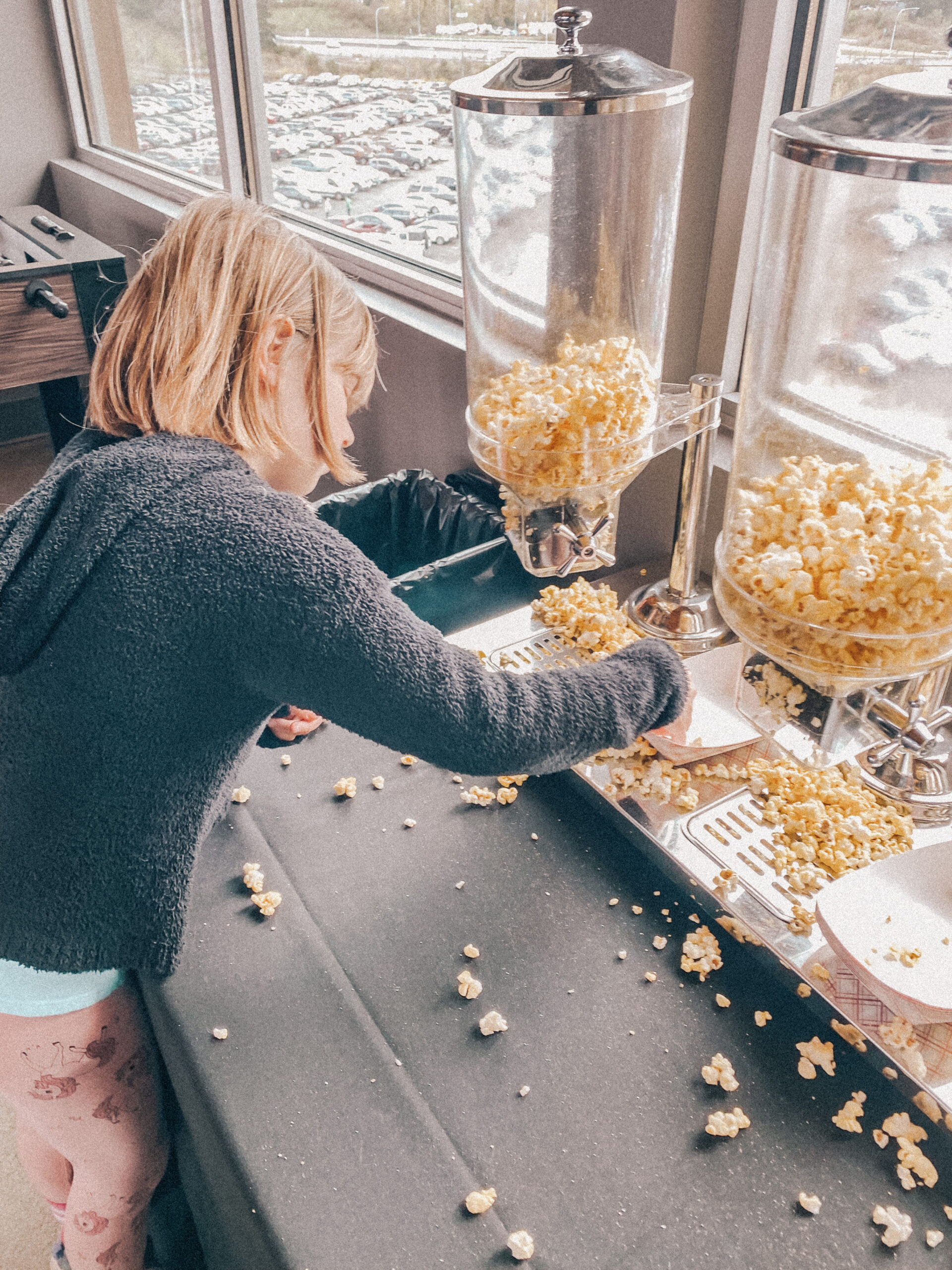 Second, after we left the club, we had to scout the food situation downstairs, stand in line for more two popcorns, two cotton candy tubs, and 5 hot dogs. Then we had to spill the popcorn, clean it up, find our seats, sit down for four seconds, shove food in our faces, fall victim to distraction yet again when a certain someone had to go potty, find a restroom, discreetly panic while I let 7-year-old Wyatt go into the men’s restroom alone because he’s too old for me to drag him into the women’s restroom, walk back to our seats, get lost