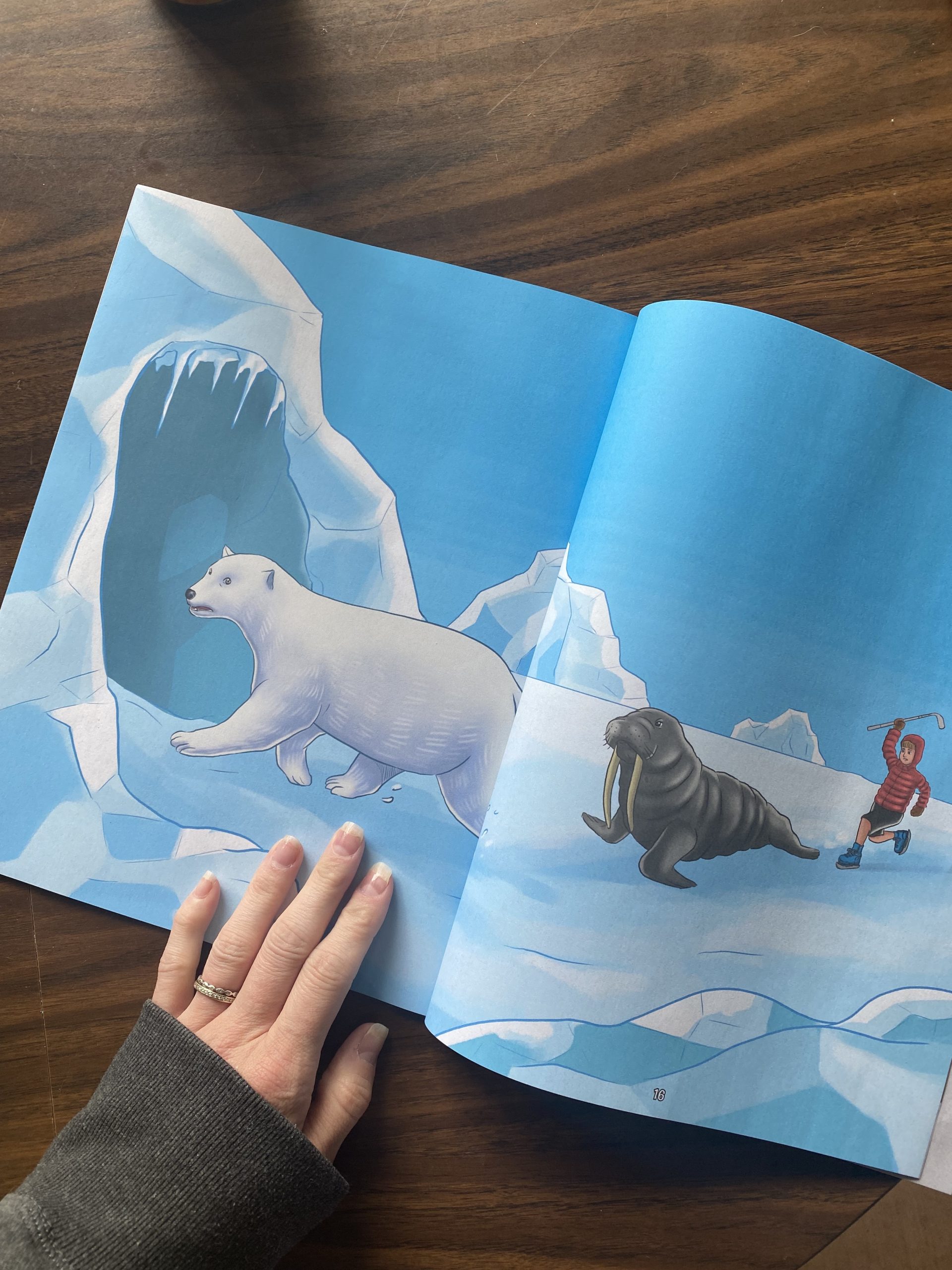 ▶ The illustration comparisons are cool. It was fun to show the kids the two different drawings and compare what Scotty’s playtime looked like to his mom versus what his playtime looked like in his imagination. Example: Scotty running in the yard alone v Scotty running alongside his Polar Bear friend in the arctic.